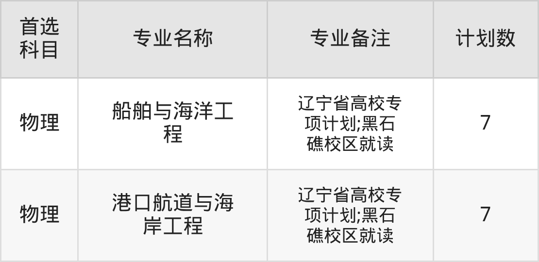 2025年大连海洋大学在辽宁招生人数是14人,招生专业包括船舶与海洋工程、港口航道与海岸工程。具体如下图所示: