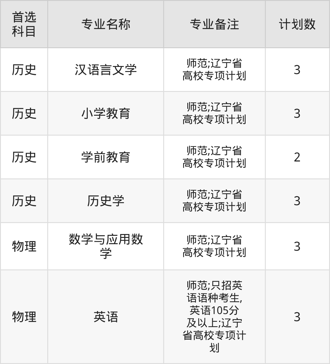 2025年渤海大学在辽宁招生人数是17人,招生专业包括汉语言文学、小学教育、学前教育、历史学、数学与应用数学、英语。具体如下图所示: