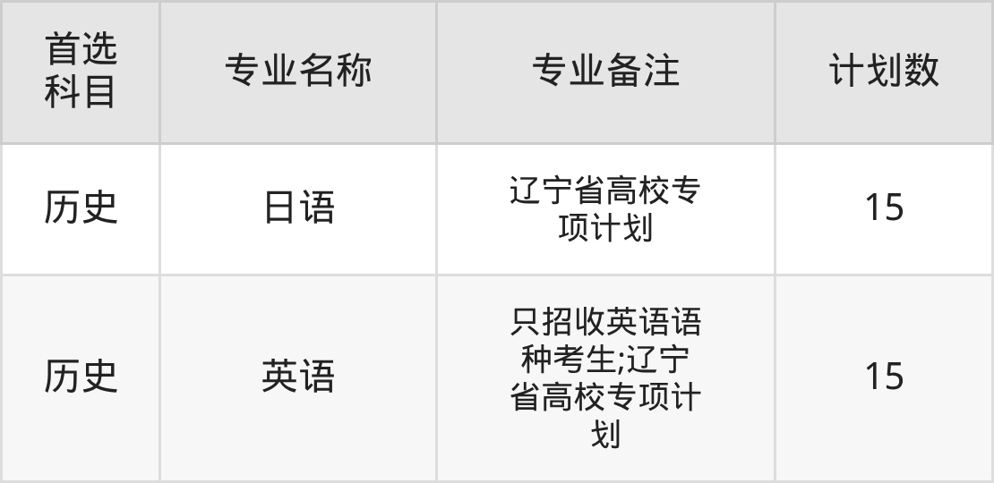 2025年大连外国语大学在辽宁招生人数是30人,招生专业包括日语、英语。具体如下图所示: