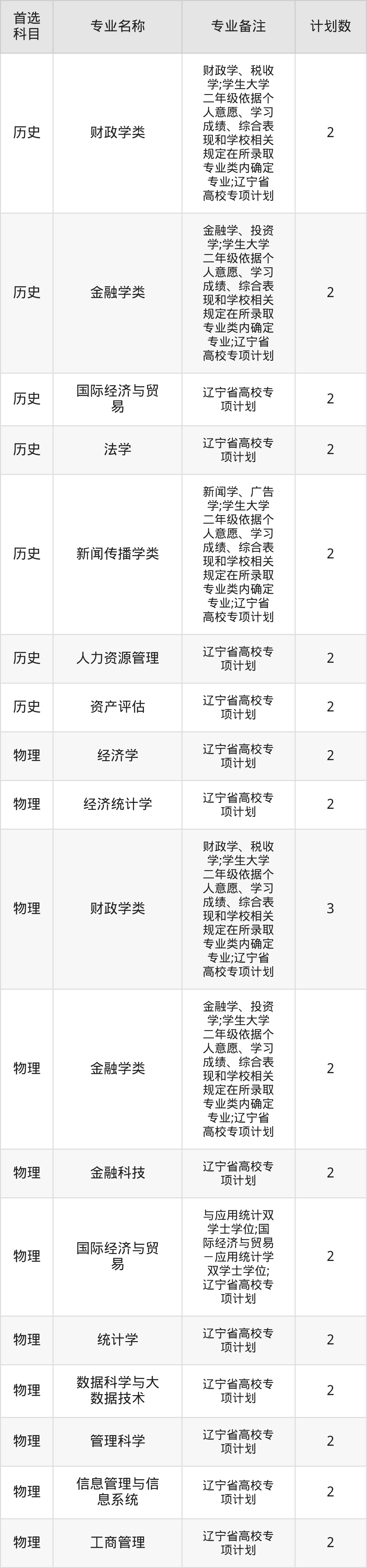 2025年东北财经大学在辽宁招生人数是37人,招生专业包括财政学类、金融学类、国际经济与贸易、法学、新闻传播学类、人力资源管理、资产评估、经济学、经济统计学、金融科技等。具体如下图所示: