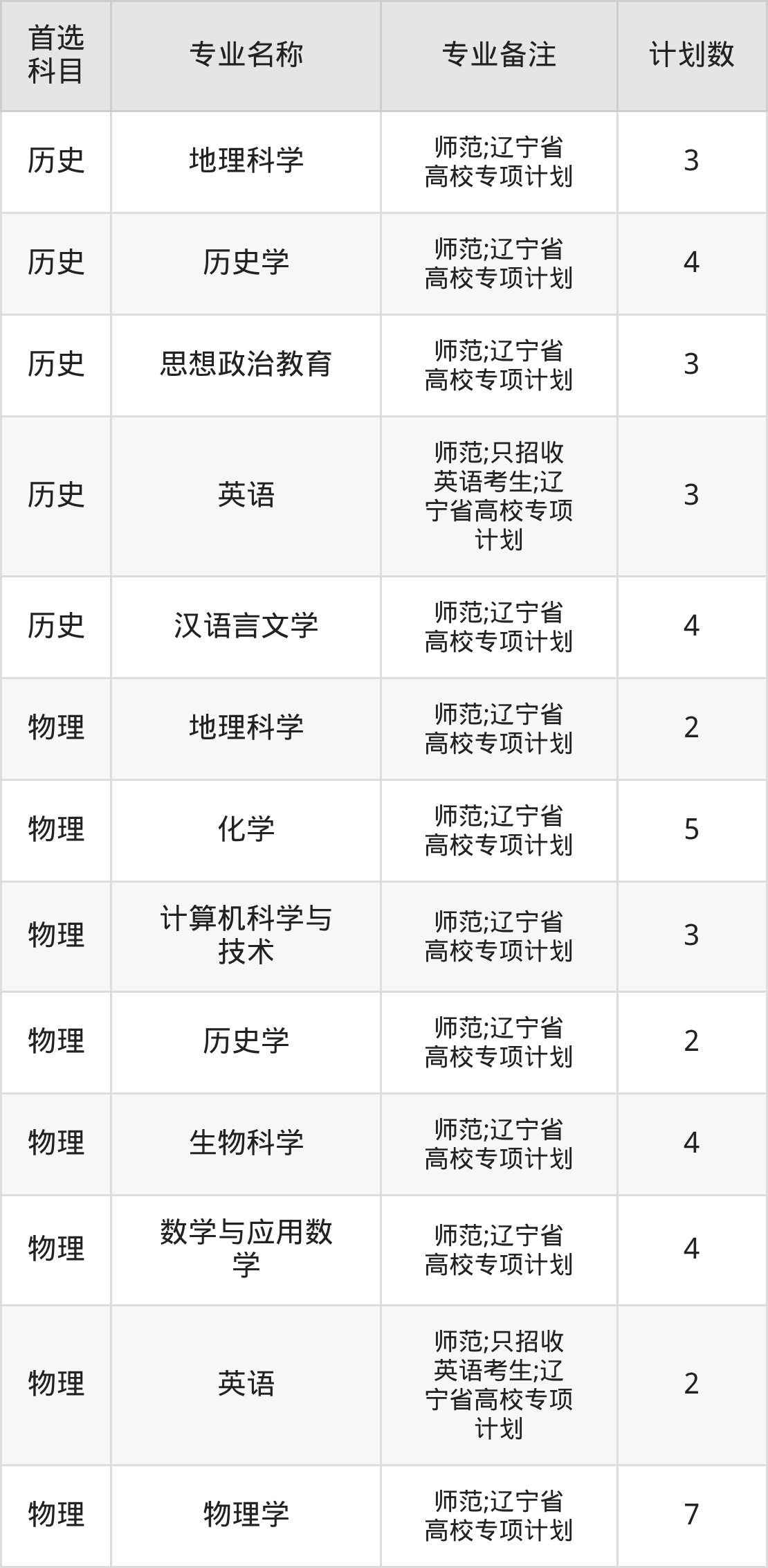 2025年辽宁师范大学在辽宁招生人数是46人,招生专业包括地理科学、历史学、思想政治教育、英语、汉语言文学、化学、计算机科学与技术、生物科学、数学与应用数学、物理学。具体如下图所示: