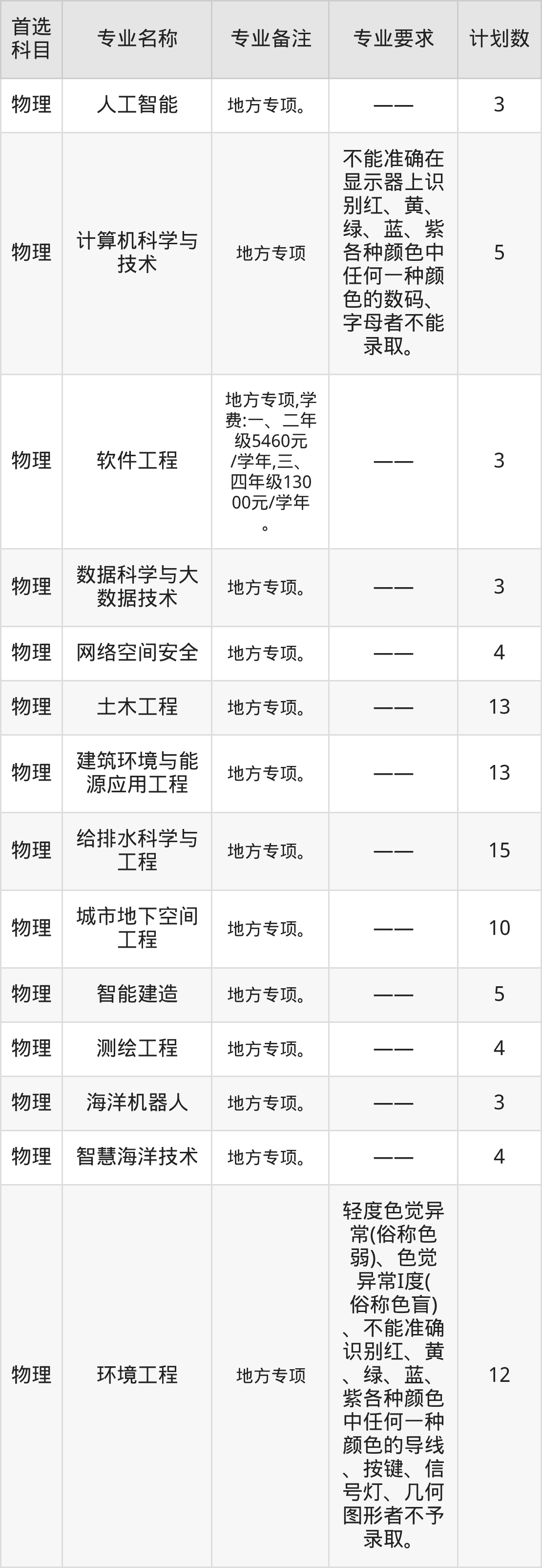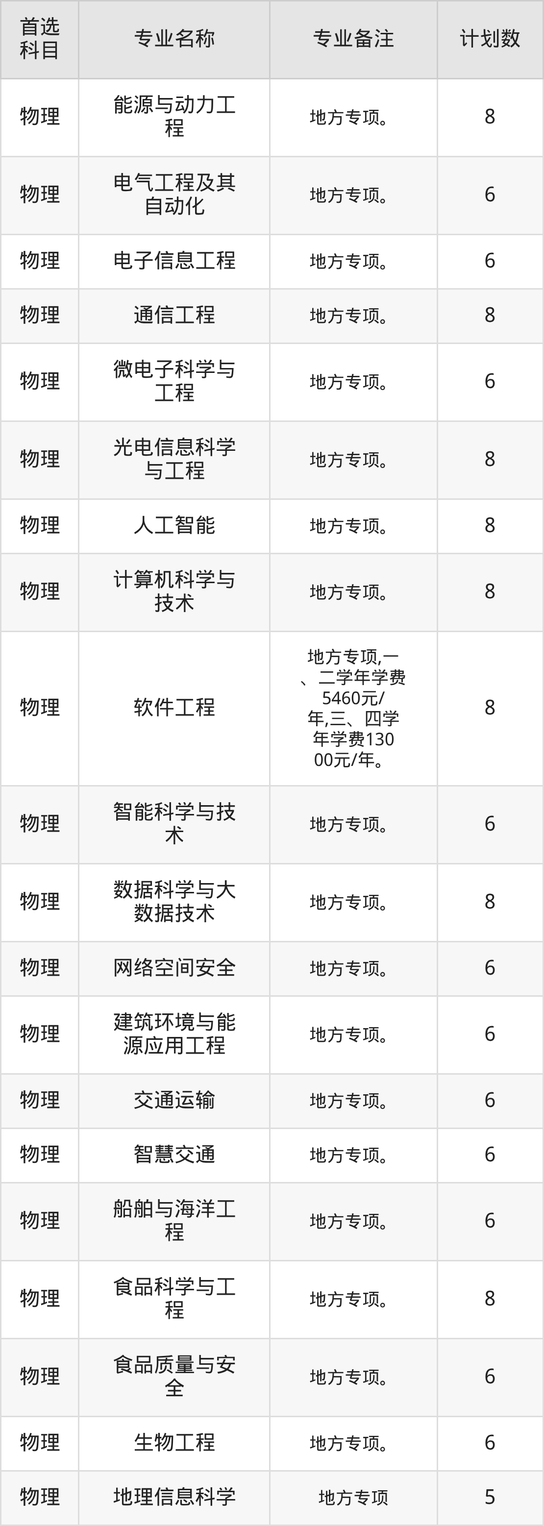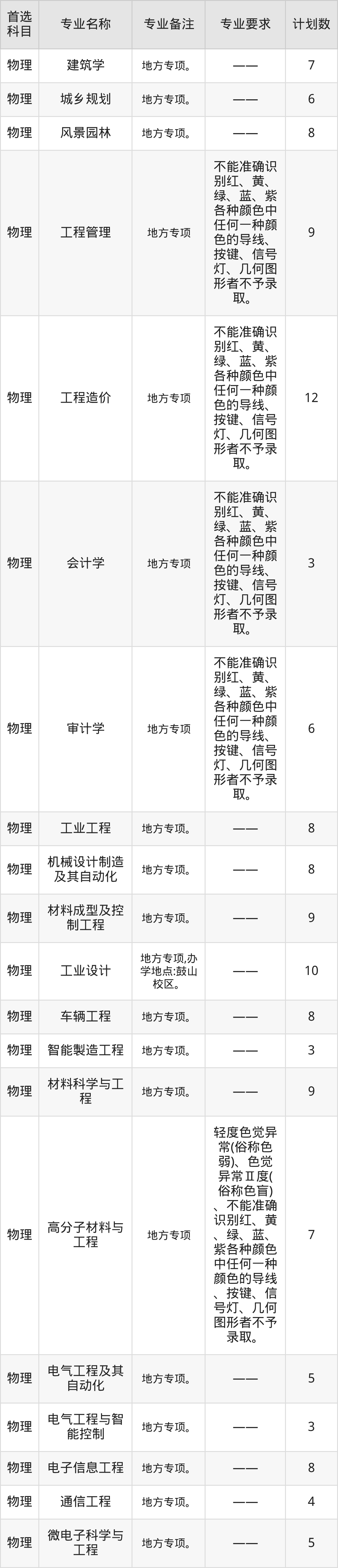 2025年福建理工大学在福建招生人数是235人,招生专业包括建筑学、城乡规划、风景园林、工程管理、工程造价、会计学、审计学、工业工程、机械设计制造及其自动化、材料成型及控制工程等。具体如下图所示: