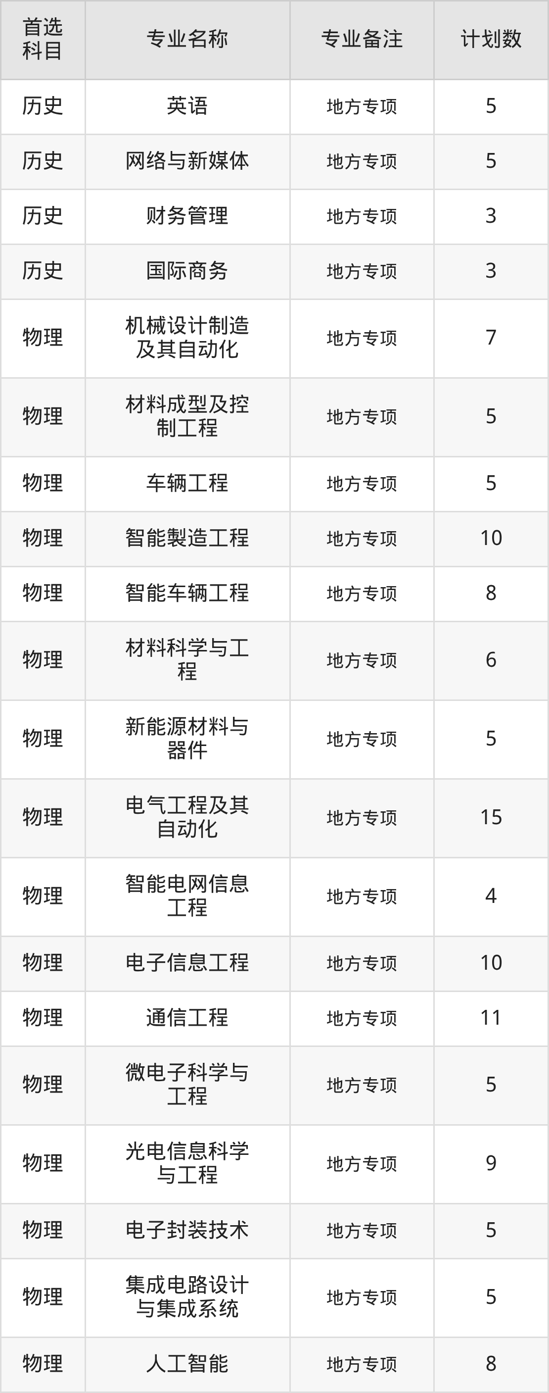 2025年厦门理工学院在福建招生人数是187人,招生专业包括英语、网络与新媒体、财务管理、国际商务、机械设计制造及其自动化、材料成型及控制工程、车辆工程、智能製造工程、智能车辆工程、材料科学与工程等。具体如下图所示: