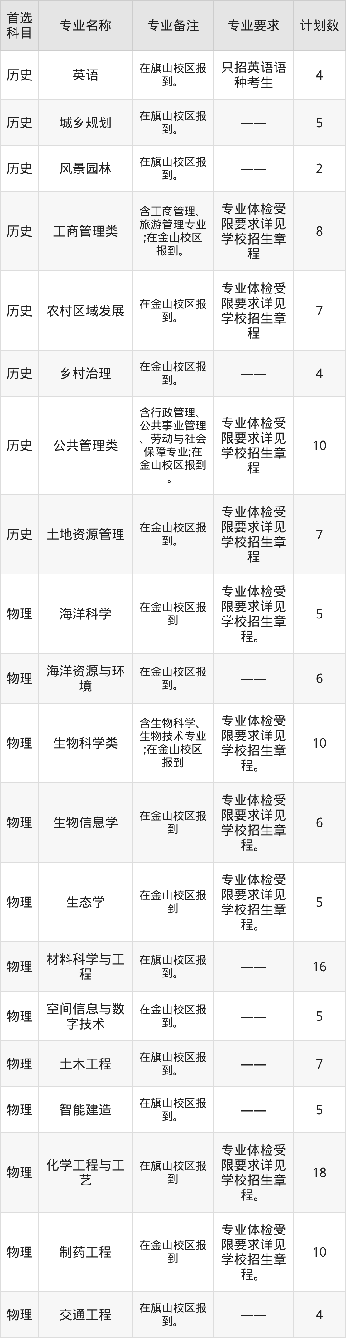 2025年福建农林大学在福建招生人数是272人,招生专业包括英语、城乡规划、风景园林、工商管理类、农村区域发展、乡村治理、公共管理类、土地资源管理、海洋科学、海洋资源与环境等。具体如下图所示: