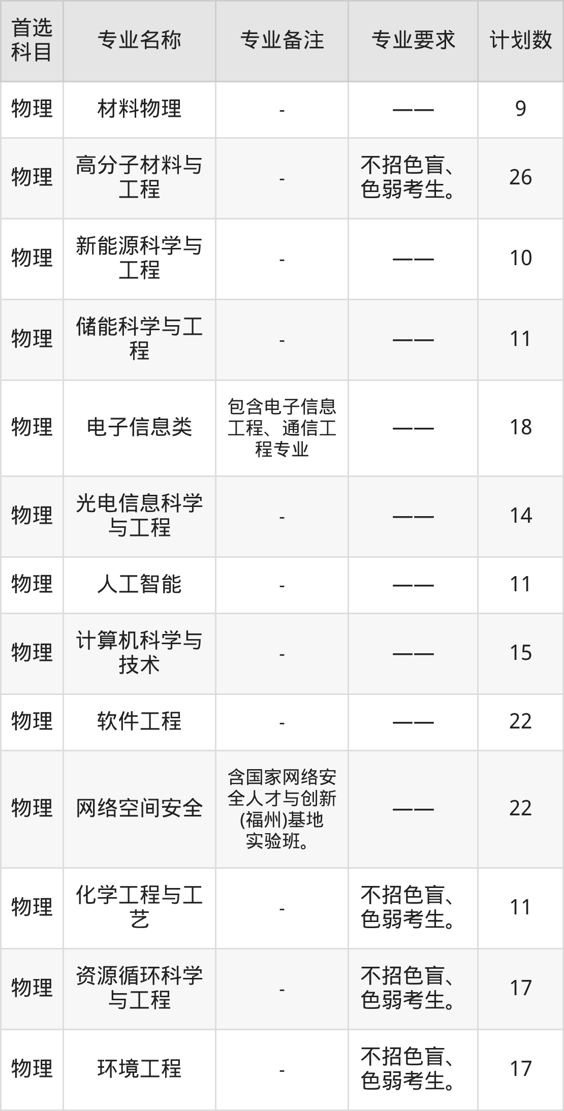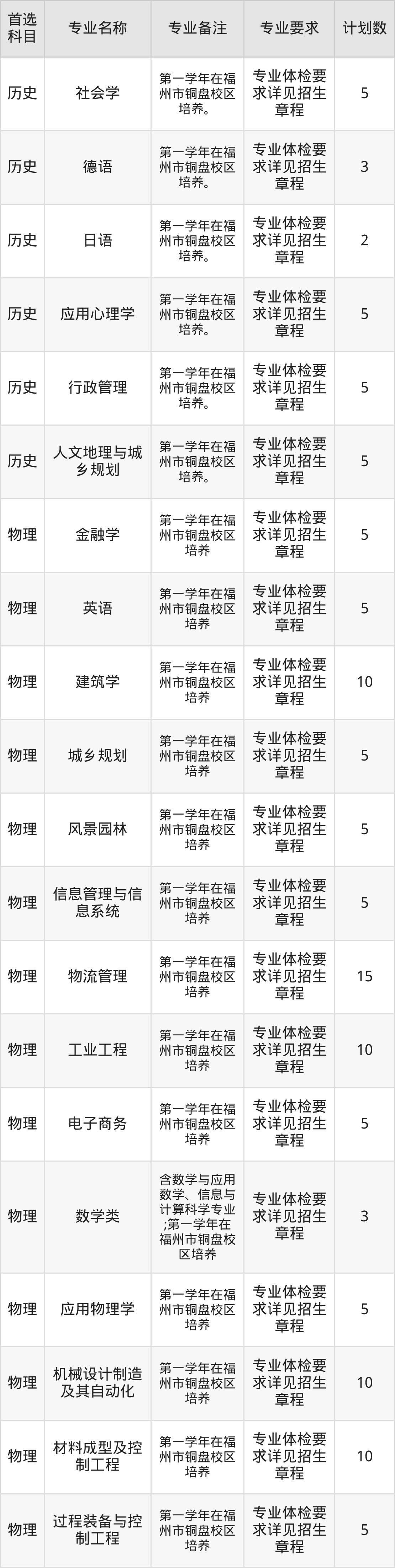 2025年一共有11所地方专项计划在福建招生,分别是福建农林大学、福建师范大学、福建医科大学、福州大学、集美大学、闽江大学、闽南师范大学、泉州师范学院、厦门理工学院和福建理工大学等,招生计划总人数是2380人。下面是各个学校招生计划以及录取分数线汇总,2026届高考生请查阅。