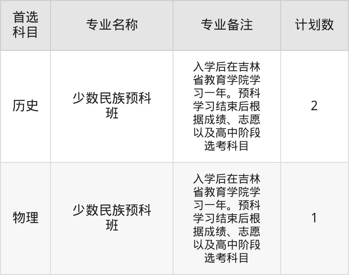 2025年吉林师范大学在辽宁招生人数是4人,招生专业包括少数民族预科班。具体如下图所示: