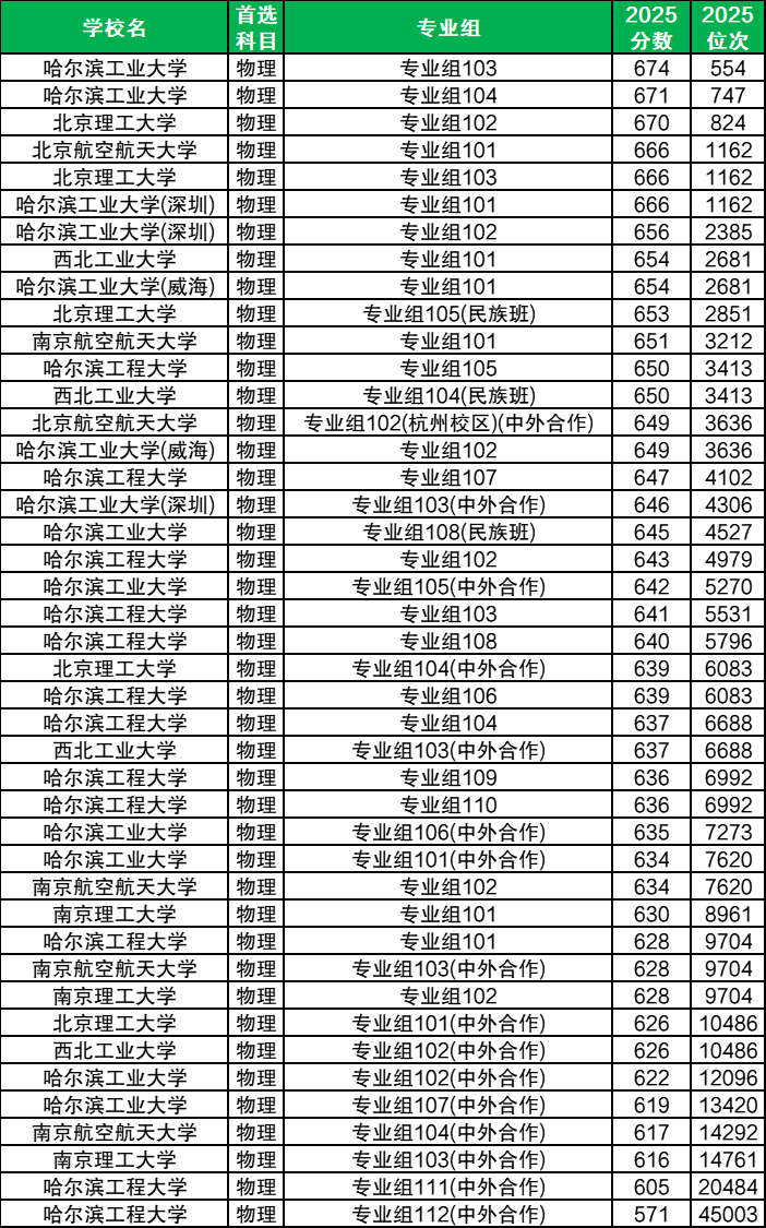 2025年国防七子在四川物理类招生专业组共计43个,录取分数线范围在571分-674分之间,其中分数最低的是哈尔滨工程大学112组(中外合作),最高的是哈尔滨工业大学103组。结合批次线来看,四川物理类考生至少要超特控线(518分)53分才有机会被录取,2026届可参考该分数门槛报考。
