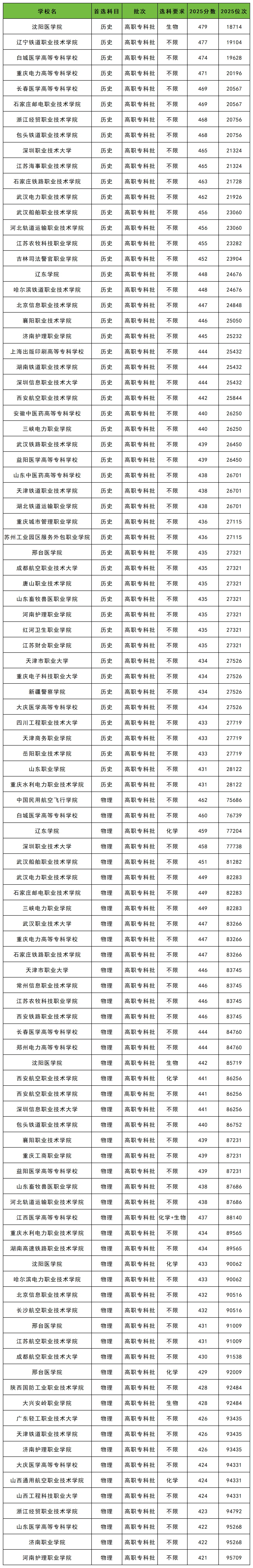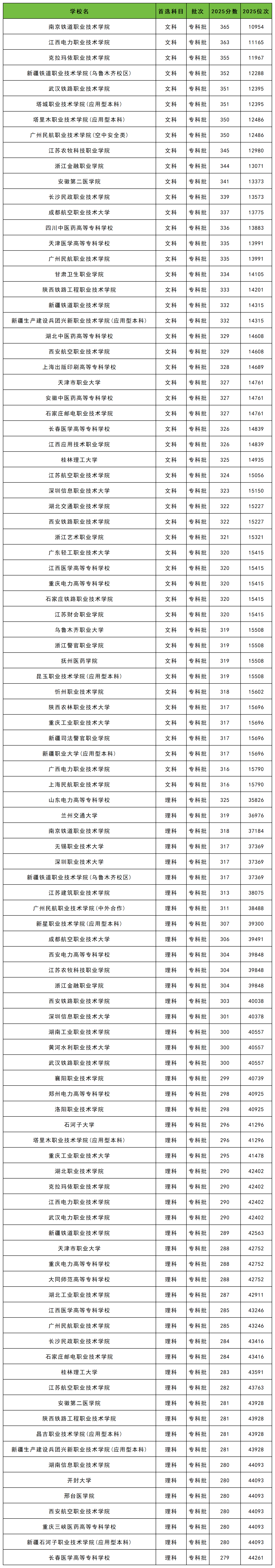 本文仅整理出2025年公办专科院校在全国部分地区的录取分数线,供参考。由于篇幅有限,表格仅展示各科类前50名分数线。