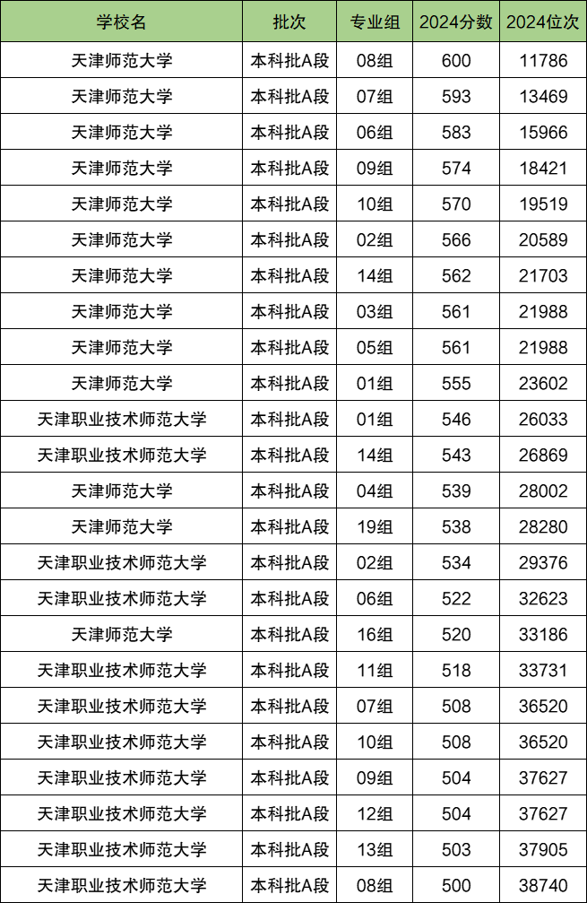 2025年天津市前二名师范大学在天津市招生分数线在600分~500分之间,最低位次在11786~38740名。如天津职业技术师范大学最低500分、天津师范大学最低520分。