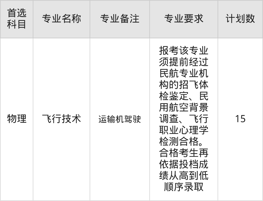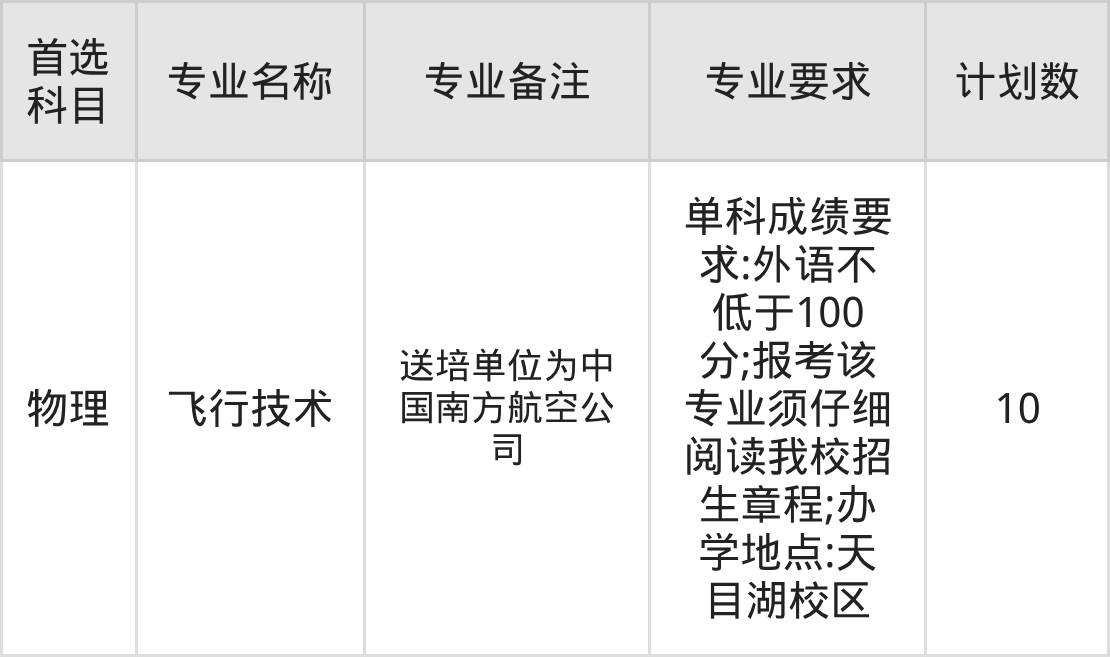 2025年南京航空航天大学在贵州招生人数是10人,招生专业包括飞行技术。具体如下图所示: