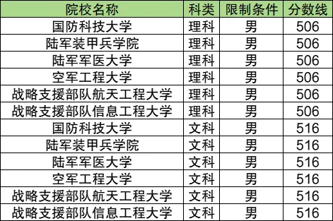 国防科技大学:理科最低506分、文科最低516分