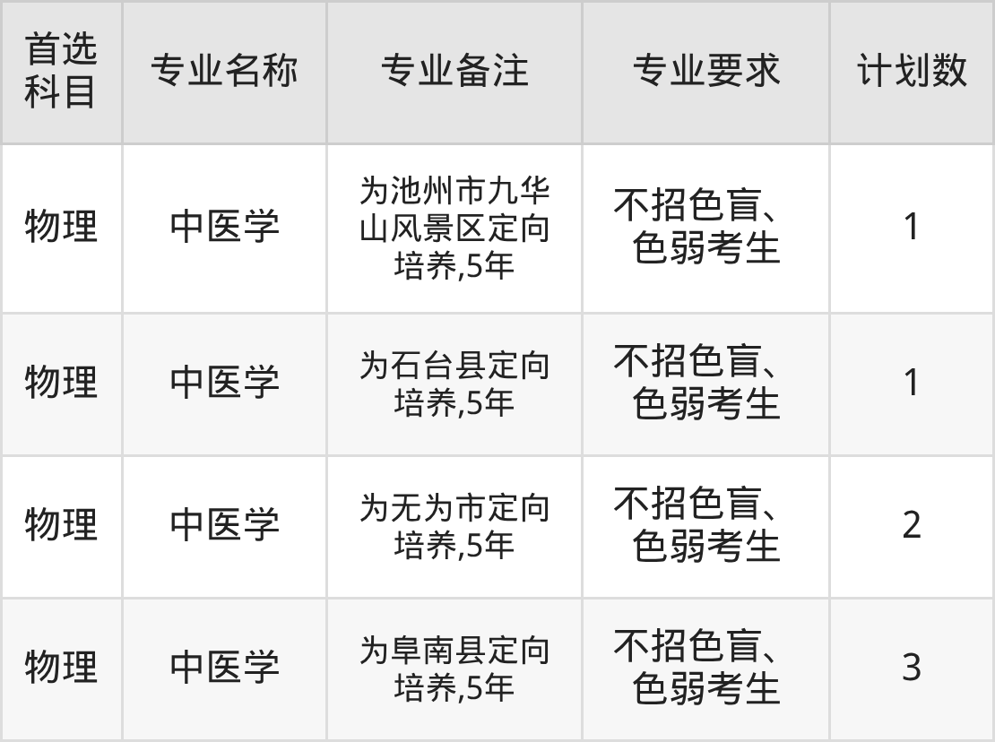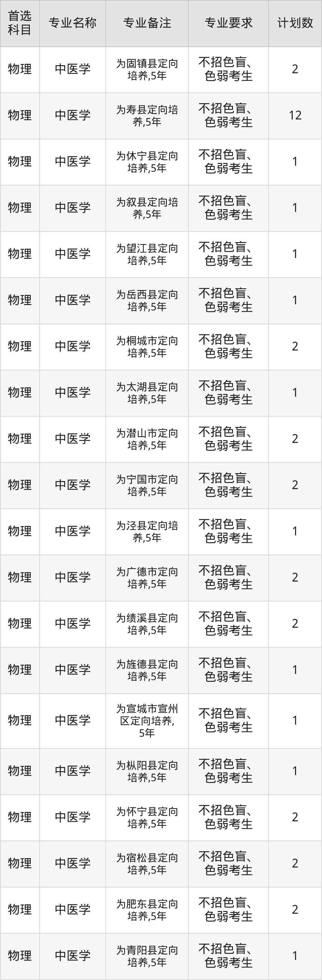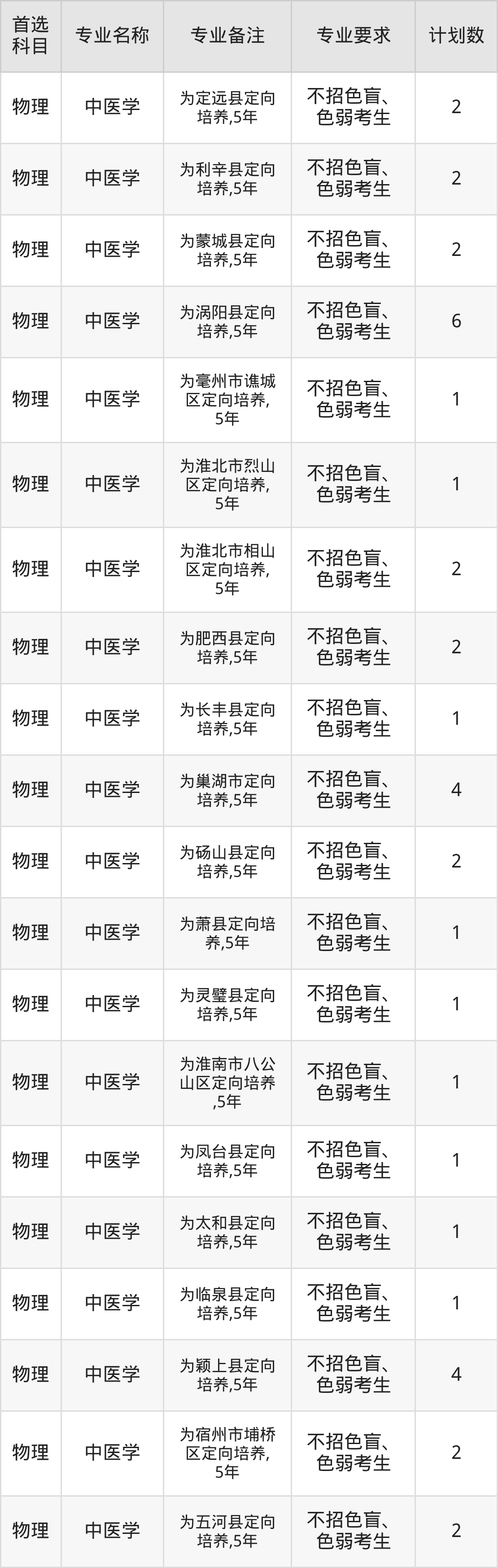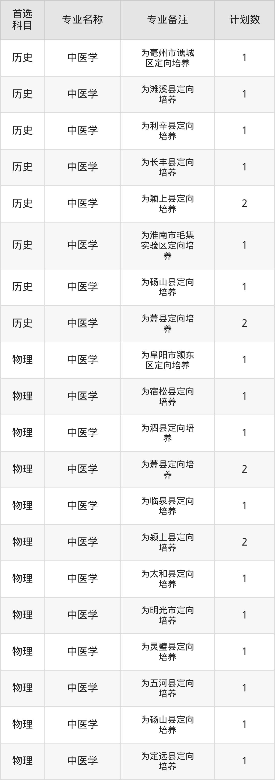 2025年安徽中医药大学在安徽招生人数是140人,招生专业包括中医学。具体如下图所示: