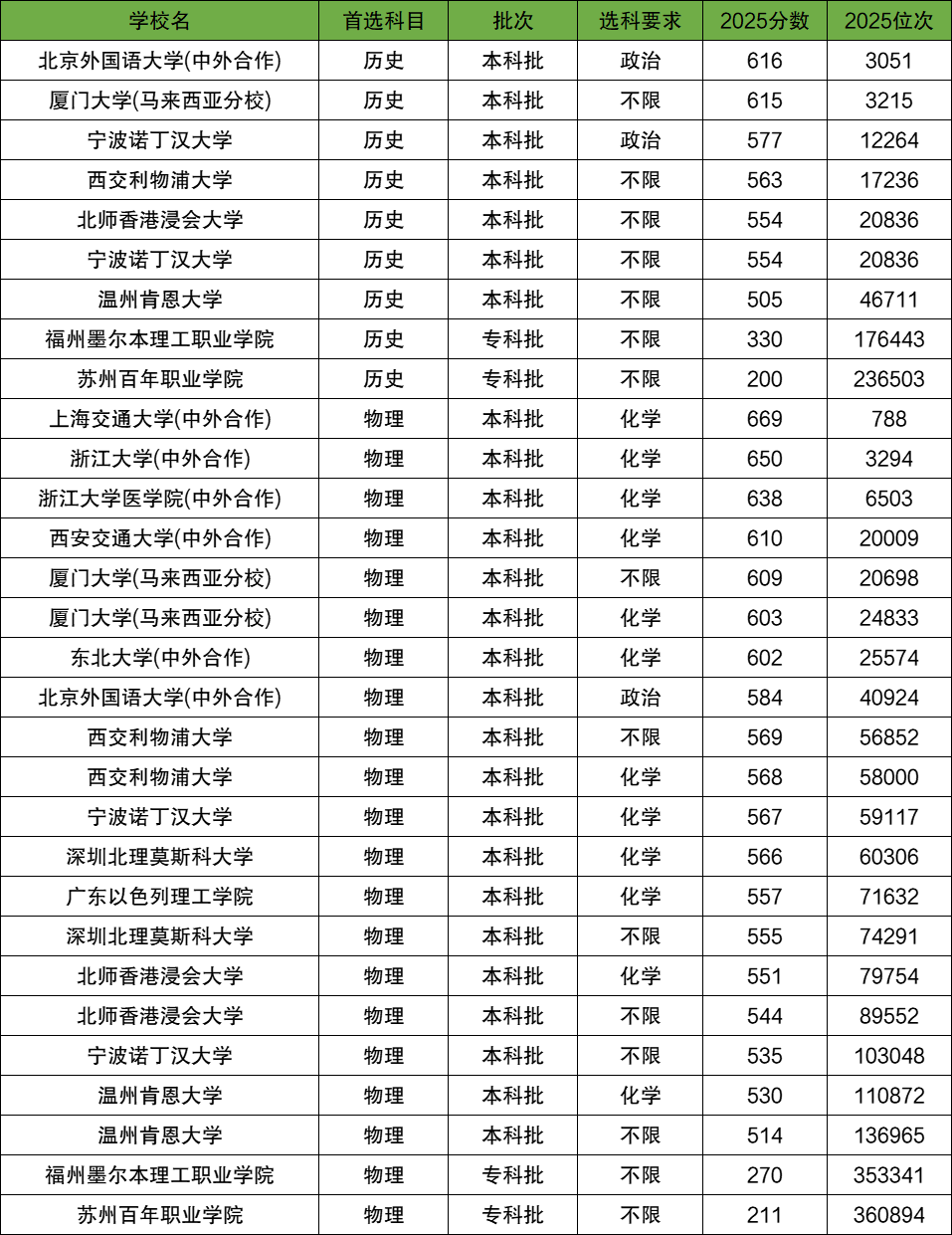 以下为2025年全国大学在河北省分数最低的中外合办专业及分数线: