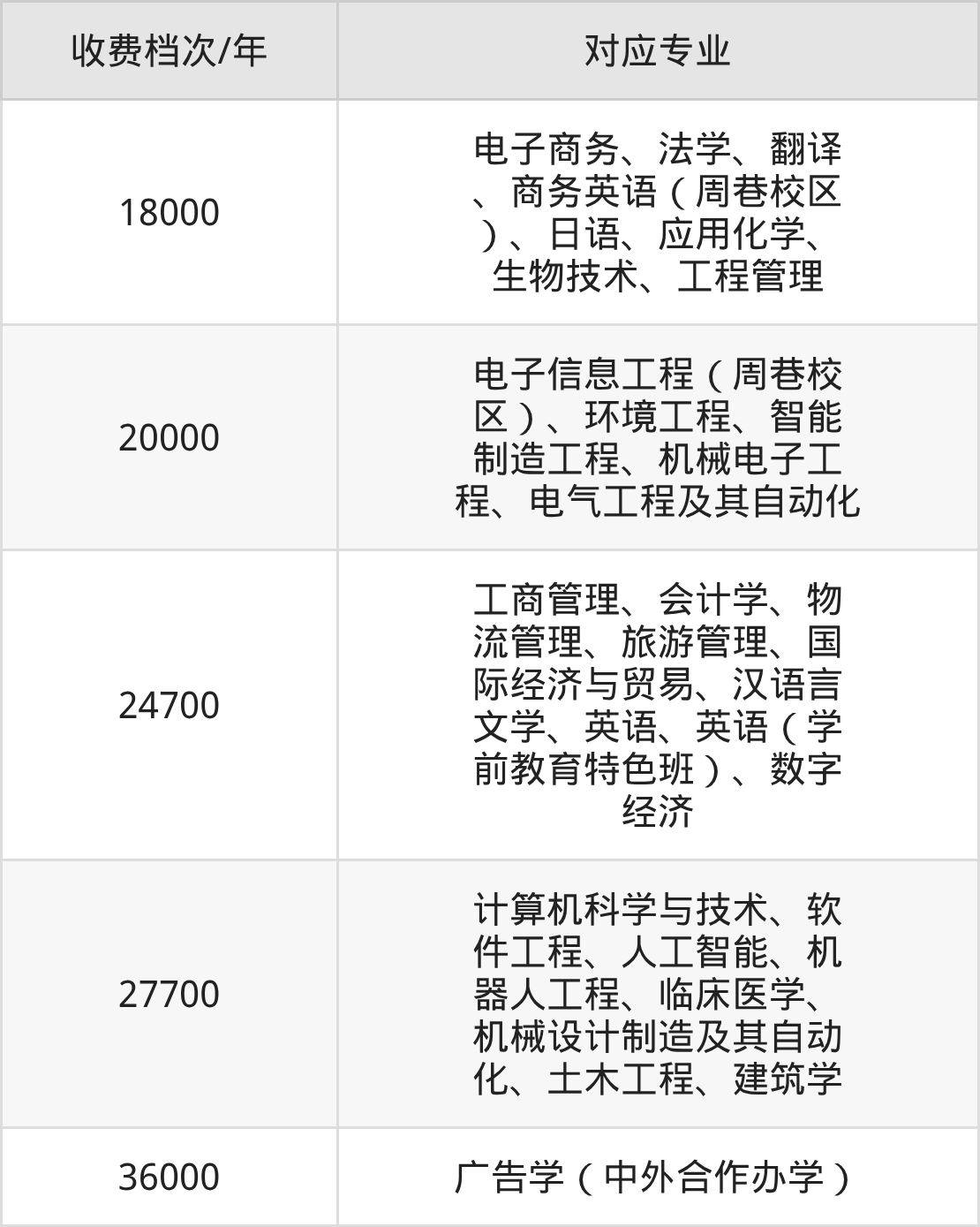 宁波大学科学技术学院学费标准分为5档,最高收费为36000元/年、最低收费为18000元/年。学费标准主要受专业类型和学制影响,以下详细列举: