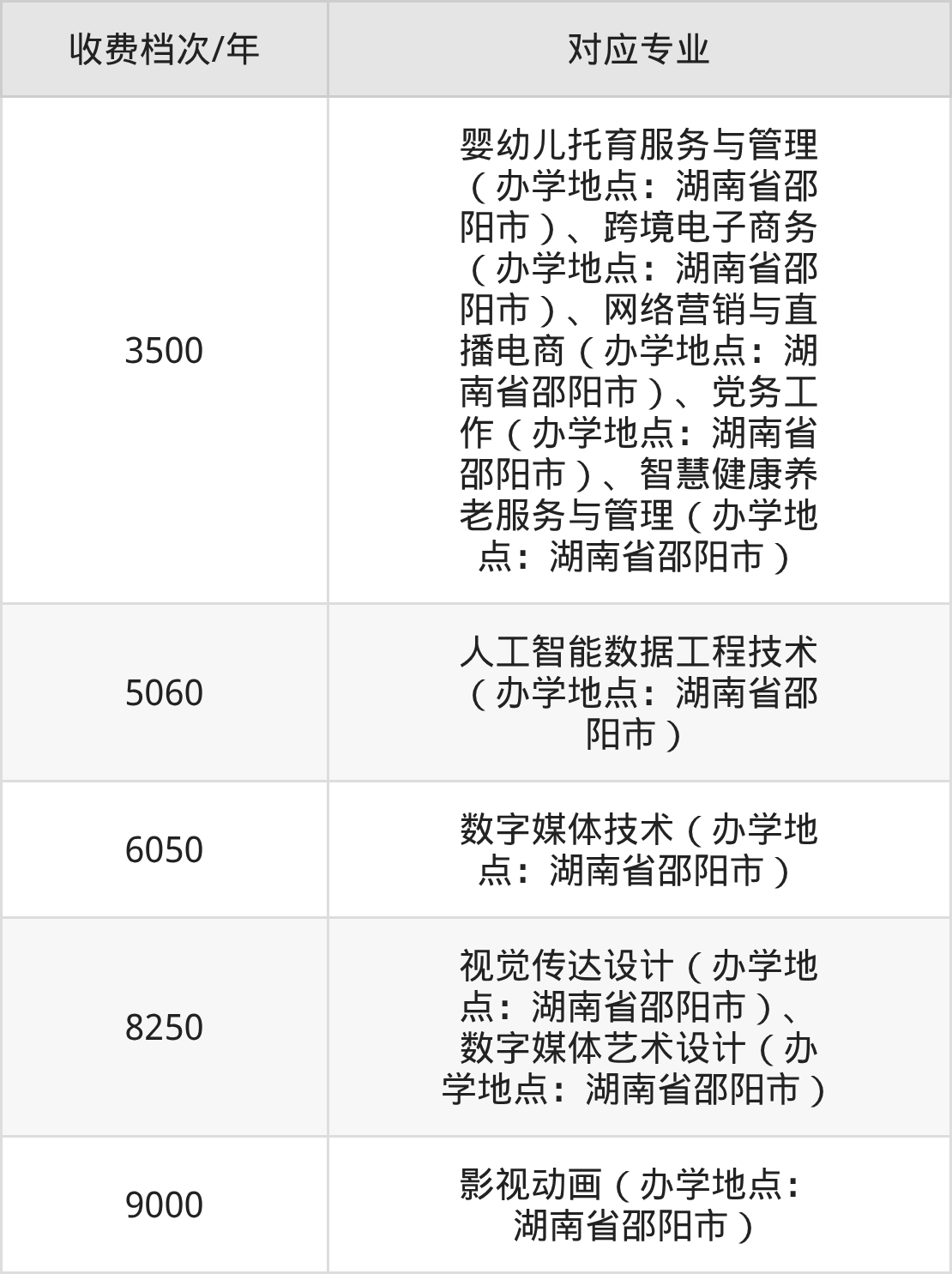 事项一:同一专业不同专业方向的收费也会存在差异,具体请以湘中幼儿师范高等专科学校最新一年公布的招生简章或招生计划内容为准。