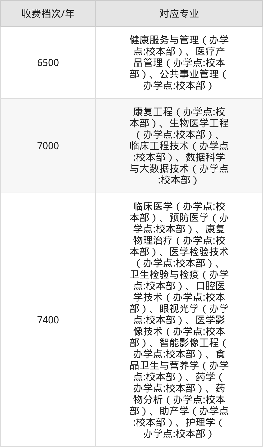 事项一:同一专业不同专业方向的收费也会存在差异,具体请以上海健康医学院最新一年公布的招生简章或招生计划内容为准。