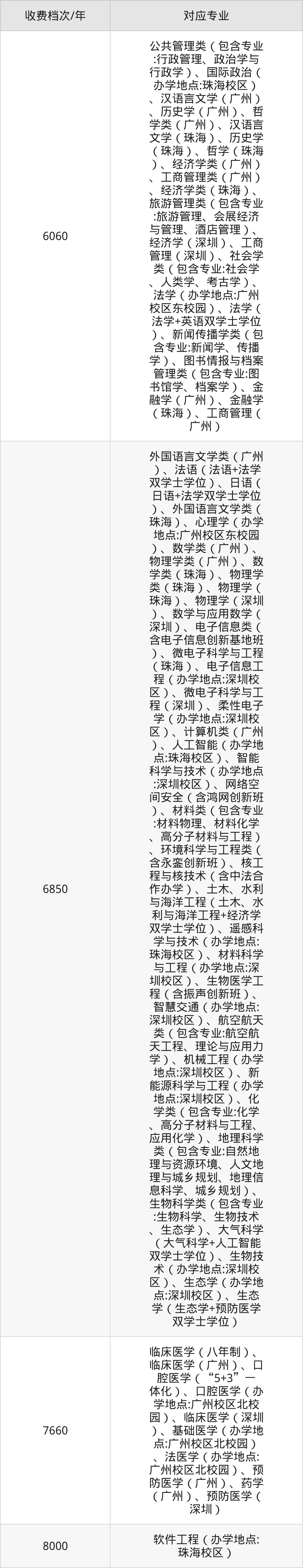 以下是中山大学学费价格表,2026届可参考: