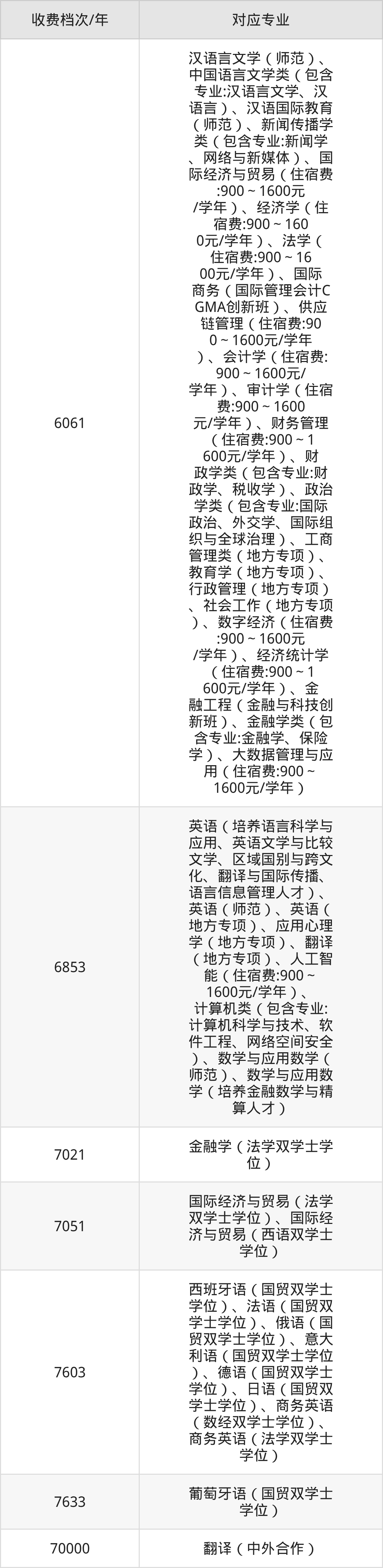 以下是广东外语外贸大学学费价格表,2026届可参考: