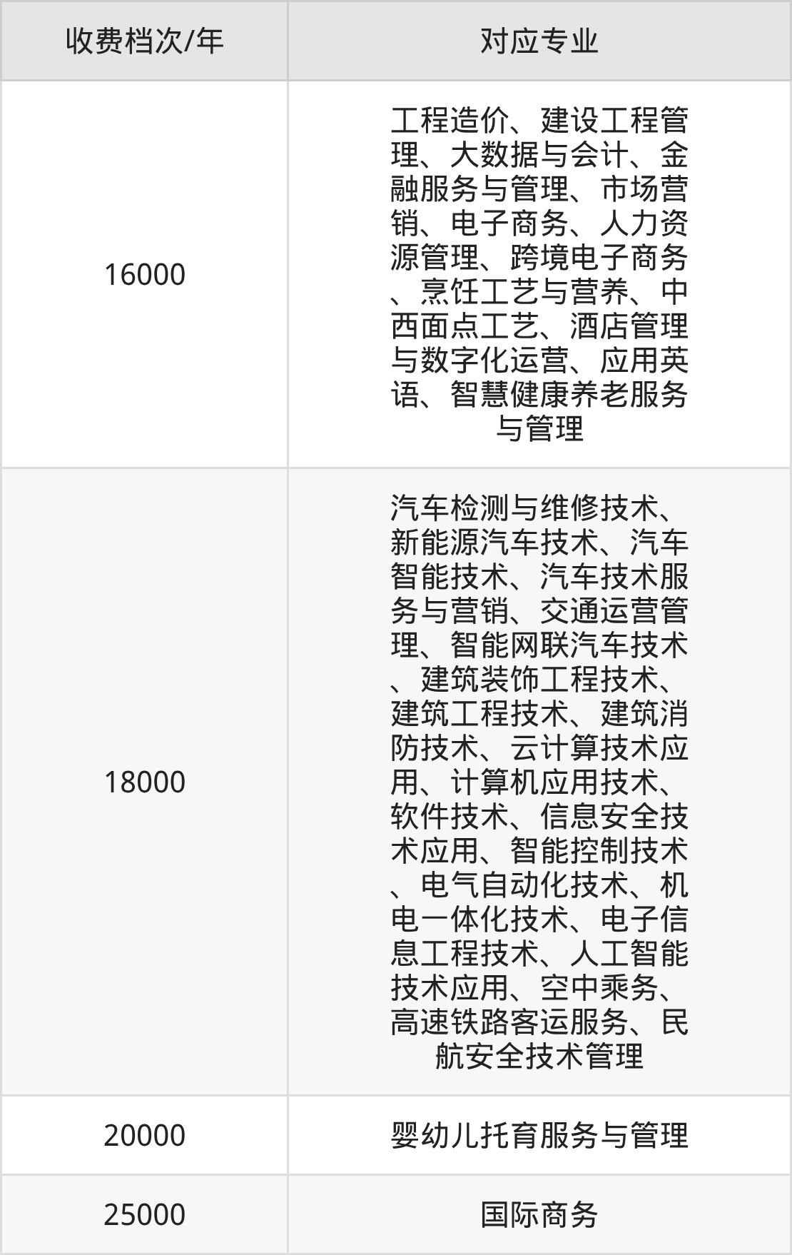 无锡南洋职业技术学院学费标准分为4档,最高收费为25000元/年、最低收费为16000元/年。学费标准主要受专业类型和学制影响,以下详细列举: