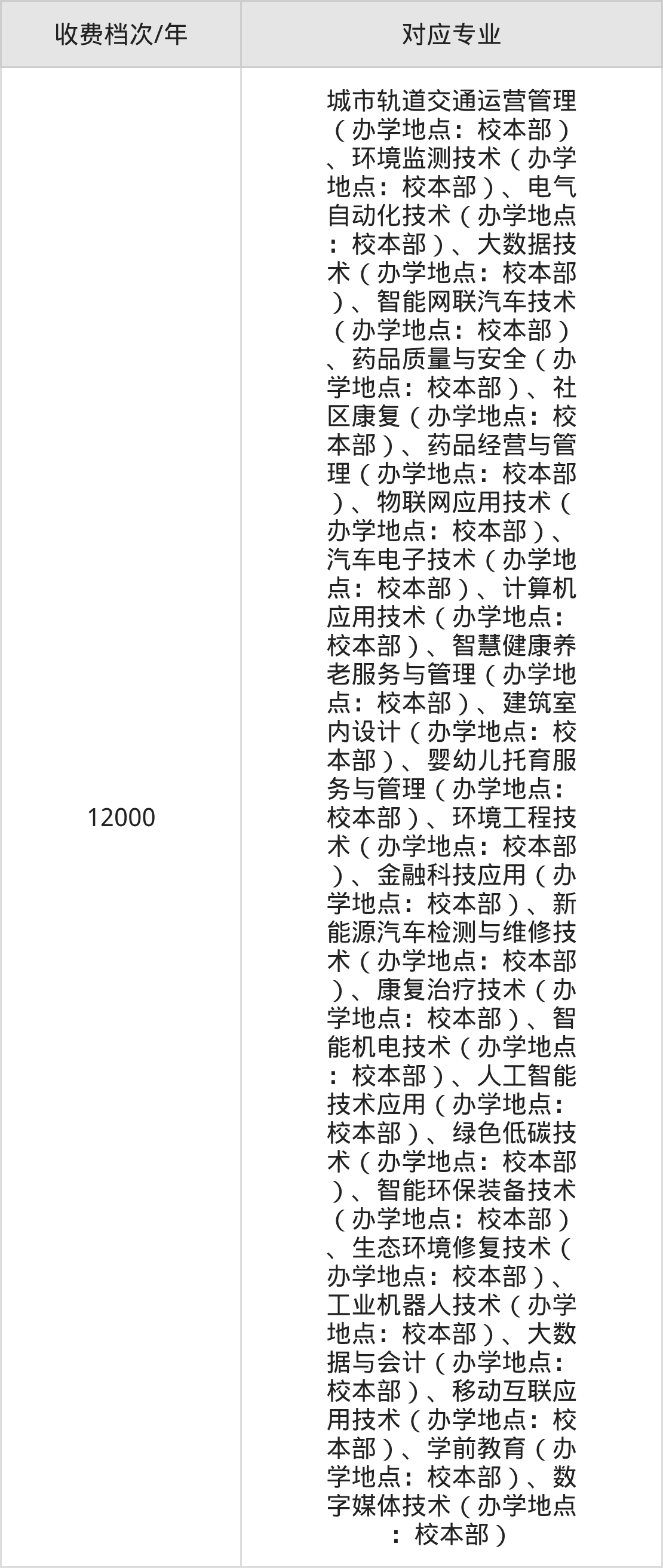 重庆资源与环境保护职业学院学费标准只有1档,最低收费为12000元/年。学费标准主要受专业类型和学制影响,以下详细列举: