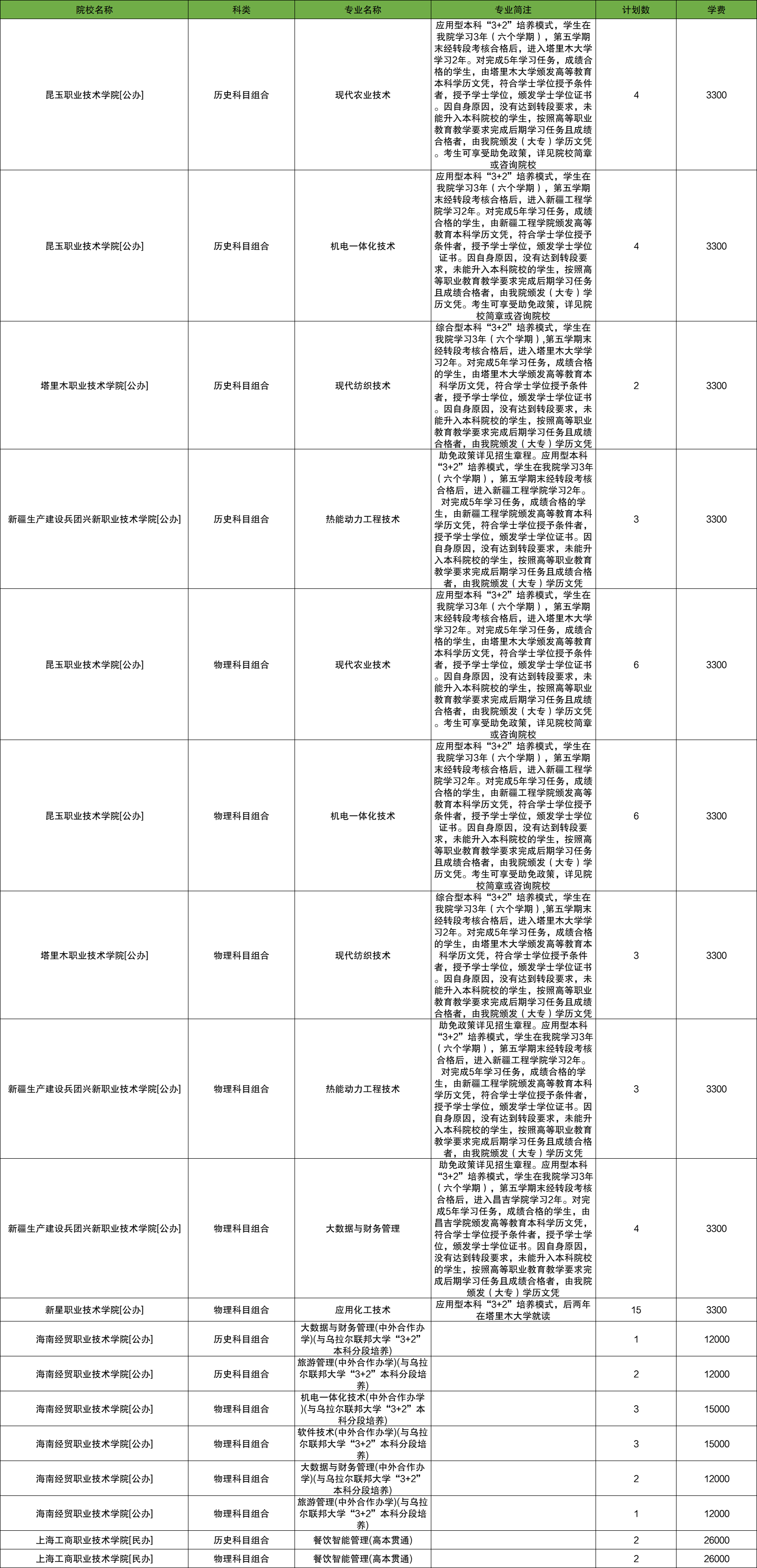 对接的本科院校名单有:塔里木大学、新疆工程学院、昌吉学院、乌拉尔联邦大学等。