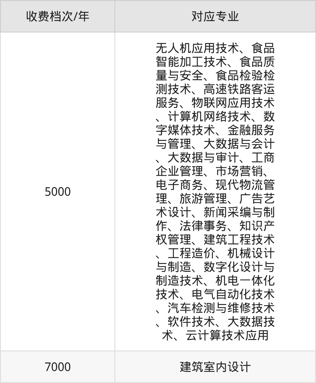 邯郸职业技术学院学费标准分为2档,最高收费为7000元/年、最低收费为5000元/年。学费标准主要受专业类型和学制影响,以下详细列举: