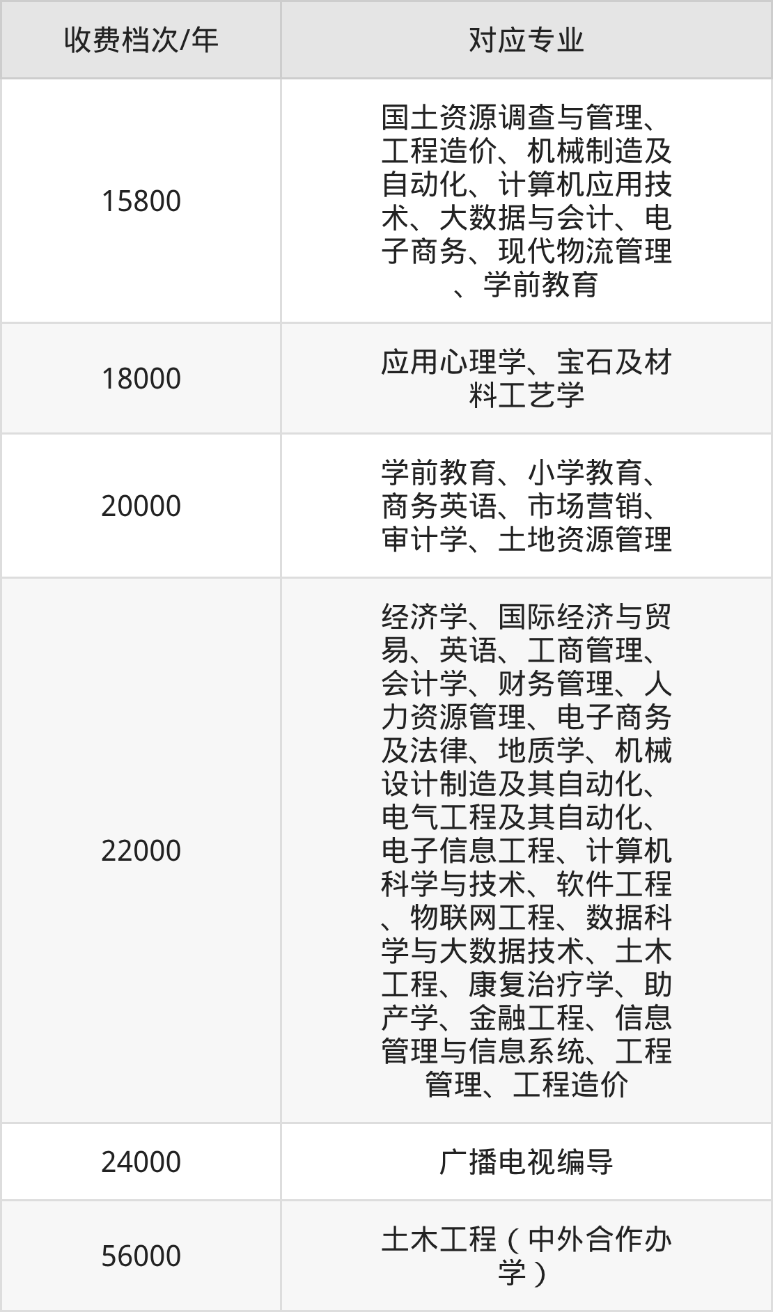 保定理工学院学费标准分为6档,最高收费为56000元/年、最低收费为15800元/年。学费标准主要受专业类型和学制影响,以下详细列举: