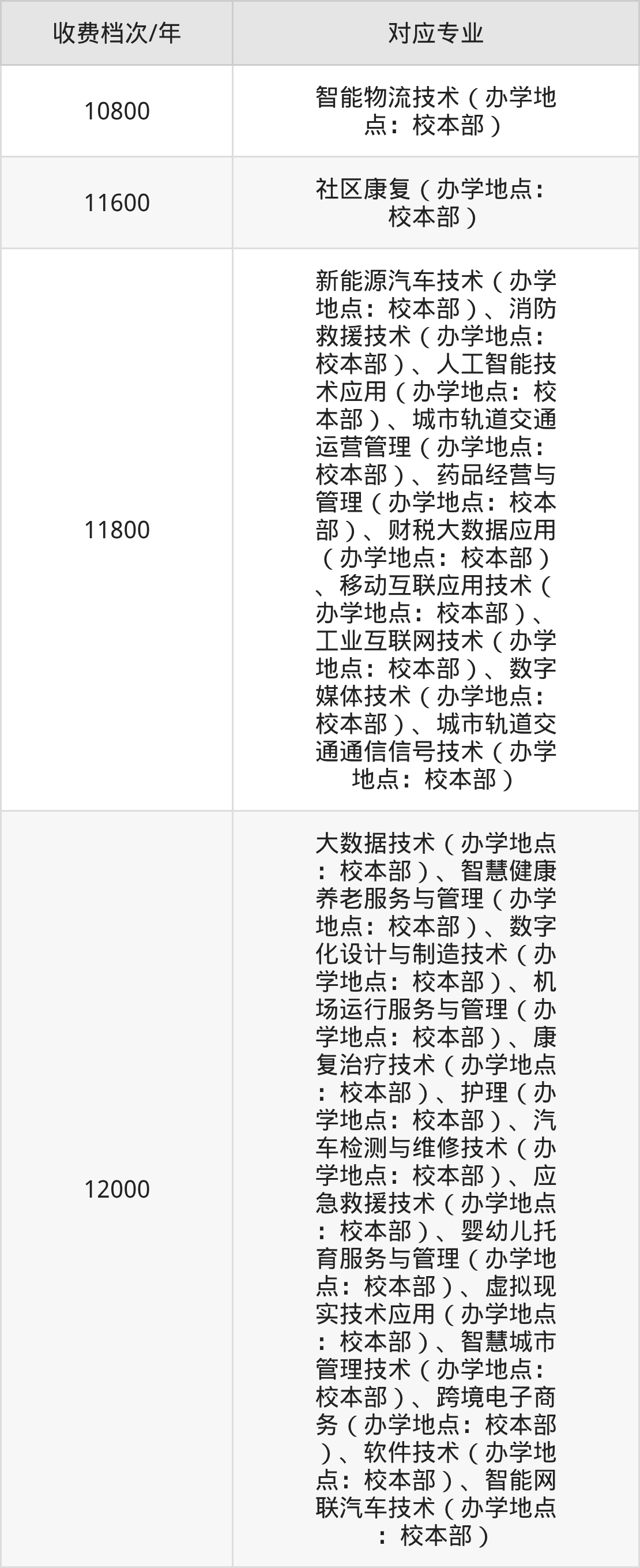 重庆理工职业学院学费标准分为4档,最高收费为12000元/年、最低收费为10800元/年。学费标准主要受专业类型和学制影响,以下详细列举:
