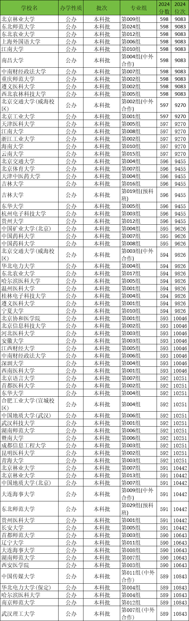 位次1万名左右的考生能上的院校专业组有:北京林业大学第009组(9083名)、东北师范大学第024组(9083名)、北京工业大学第001组(9270名)、北京交通大学第004组(9455名)、中国矿业大学(北京)第004组(9626名)、华北电力大学第004组(9826名)等。