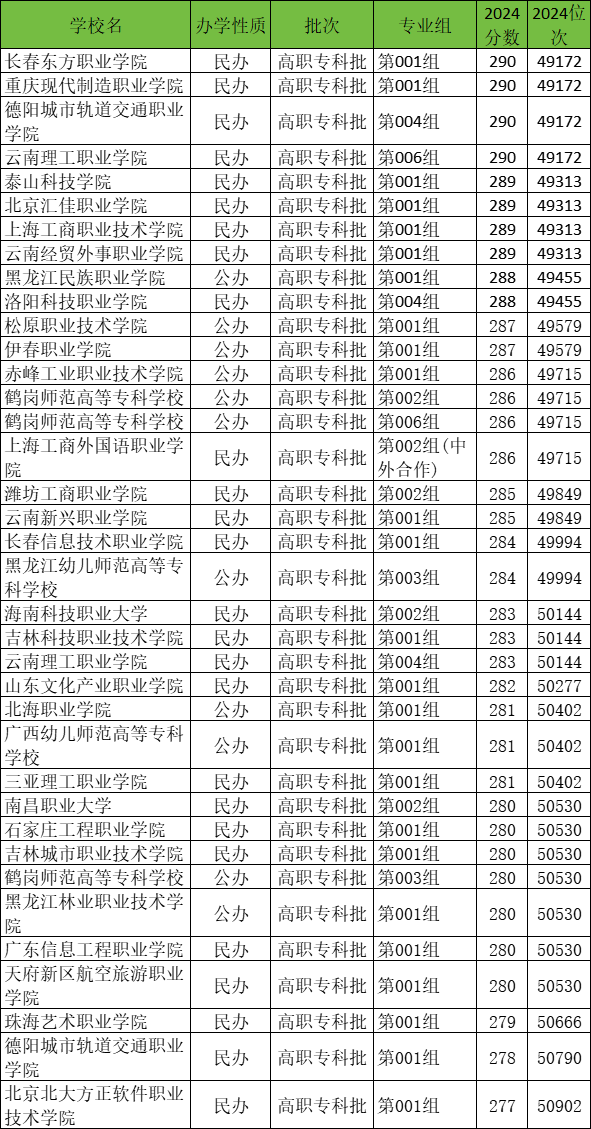 位次5万名左右的考生能上的院校专业组有:云南经贸外事职业学院第001组(49313名)、黑龙江民族职业学院第001组(49455名)、洛阳科技职业学院第004组(49455名)、松原职业技术学院第001组(49579名)、伊春职业学院第001组(49579名)、赤峰工业职业技术学院第001组(49715名)等。