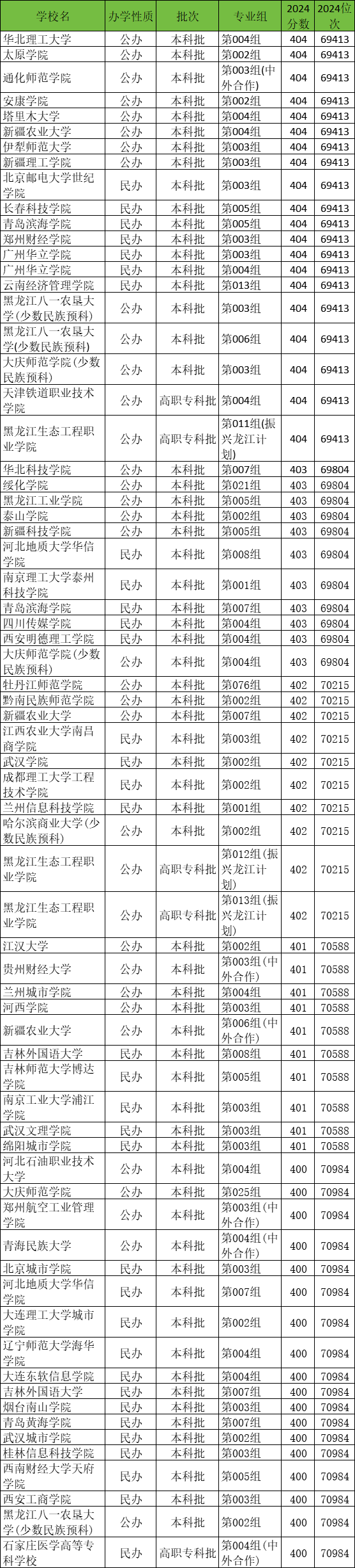 黑龙江物理类成绩排名7万能上的院校专业组具体位次为:69413名-70984名,共有69个,对应分数为404分-400分。