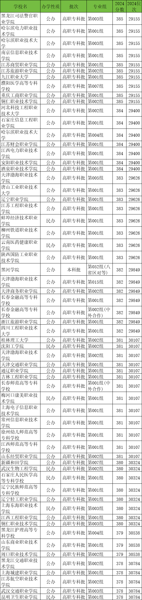 位次3万名左右的考生能上的院校专业组有:黑龙江司法警官职业学院第003组(29155名)、河北科技工程职业技术大学第002组(29400名)、天津渤海职业技术学院第005组(29626名)、天津渤海职业技术学院第015组(29849名)、桂林理工大学第002组(30107名)、新疆和田学院第007组(30324名)等。