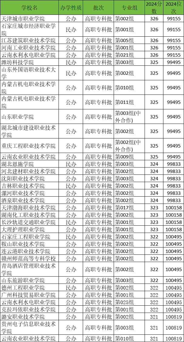位次10万名左右的考生能上的院校专业组有:天津城市职业学院第002组(99155名)、石家庄城市经济职业学院第001组(99155名)、潍坊科技学院第003组(99495名)、湖北恩施学院第003组(99833名)、天津渤海职业技术学院第017组(100158名)、石家庄工程职业学院第002组(100495名)等。