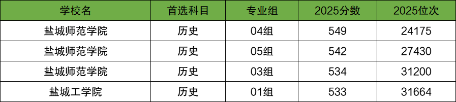 2025年盐城本科各大学专业组录取分数线(历史类):