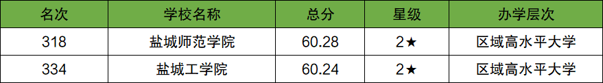2025年盐城各大学排名一览表: