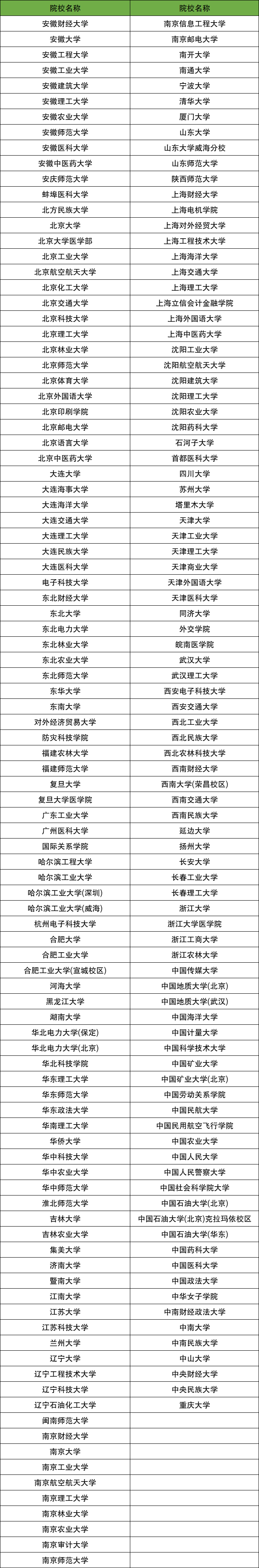江苏省:江南大学、江苏大学、江苏科技大学、南京财经大学、南京工业大学、南京航空航天大学、南京理工大学、南京林业大学、南京农业大学等。