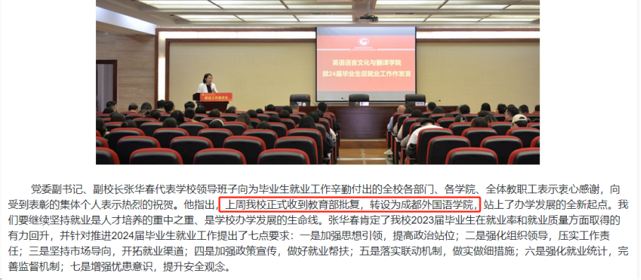 四川外国语大学成都学院已经收到了教育部的批复,有望转设为成都外国语学院。
