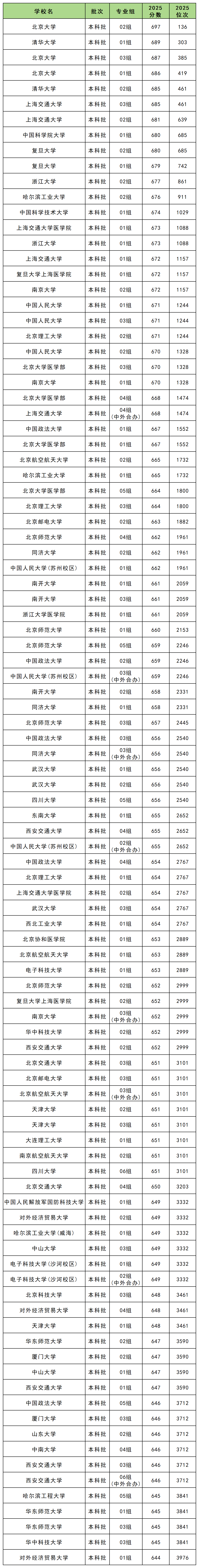 如下为各位展示的是2025年北京公办本科院校的Top100录取分及位次情况: