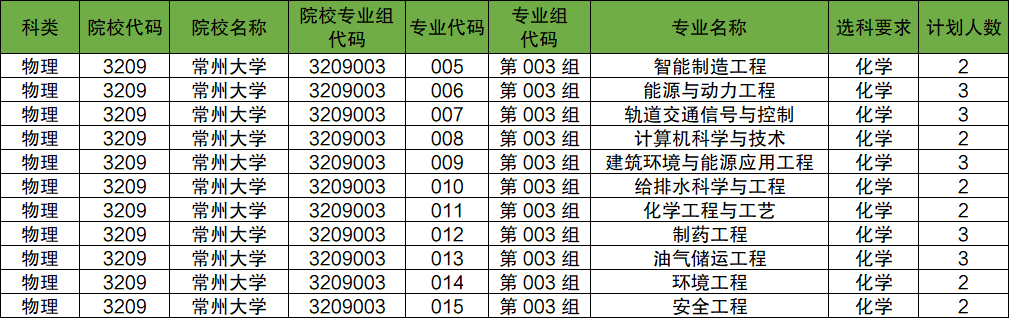 第003组:专业组代码为3209003,包含智能制造工程、能源与动力工程、轨道交通信号与控制、计算机科学与技术、建筑环境与能源应用工程、给排水科学与工程、化学工程与工艺、制药工程、油气储运工程、环境工程、安全工程。