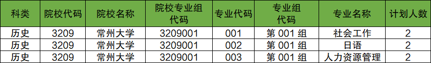第001组:专业组代码为3209001,包含专业社会工作、日语、人力资源管理。