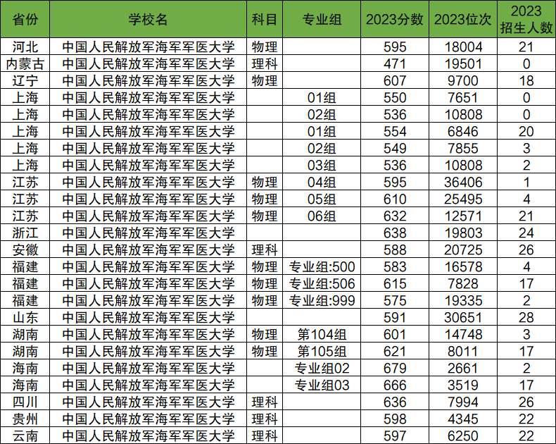2023年海军军医大学在全国各省均有招生,以下将介绍海军军医大学在各省的高考招生人数,以及招生专业,最低分数线等内容。