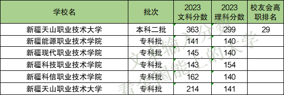 2023年在新疆文科最低363分、理科最低299分。