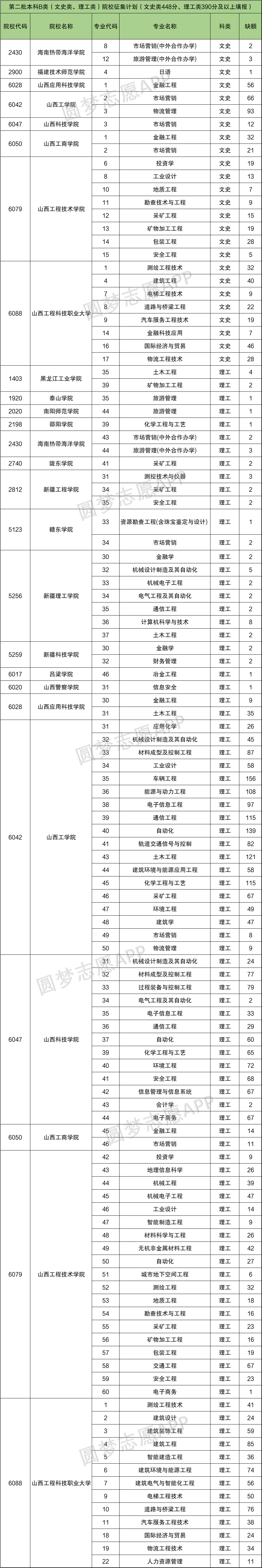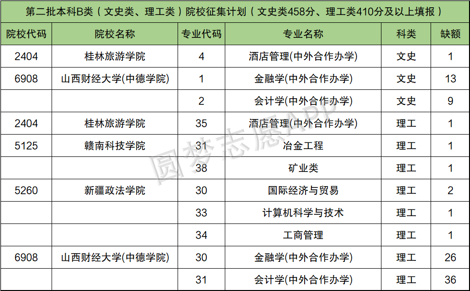 二、山西二本补录院校名单2021