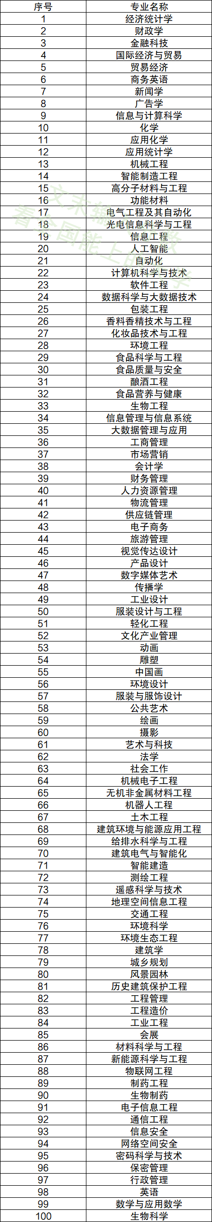 以下是一些其他物化历可以报考的100个专业,供各位参考。