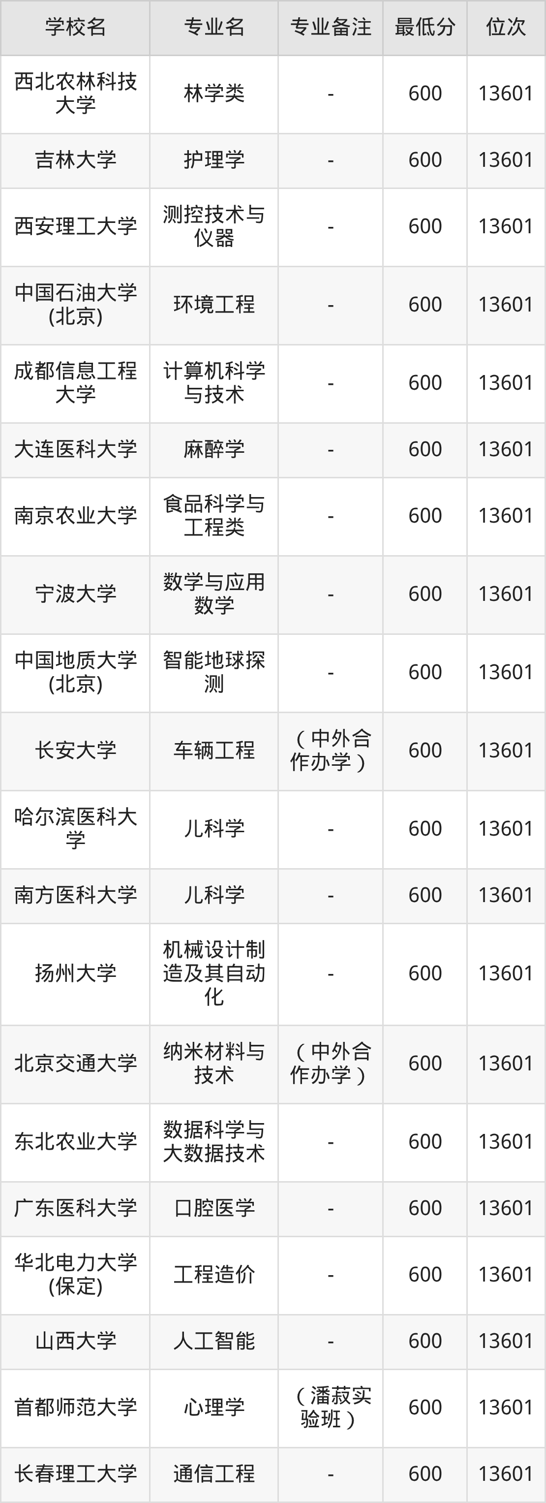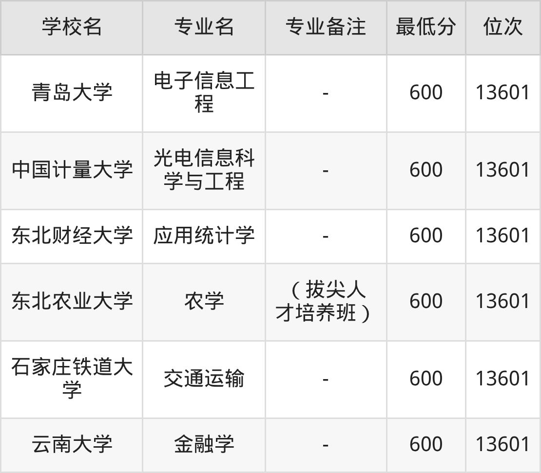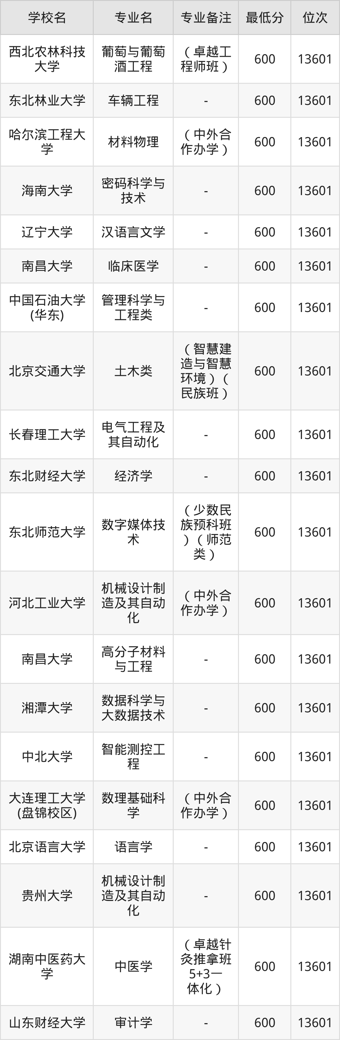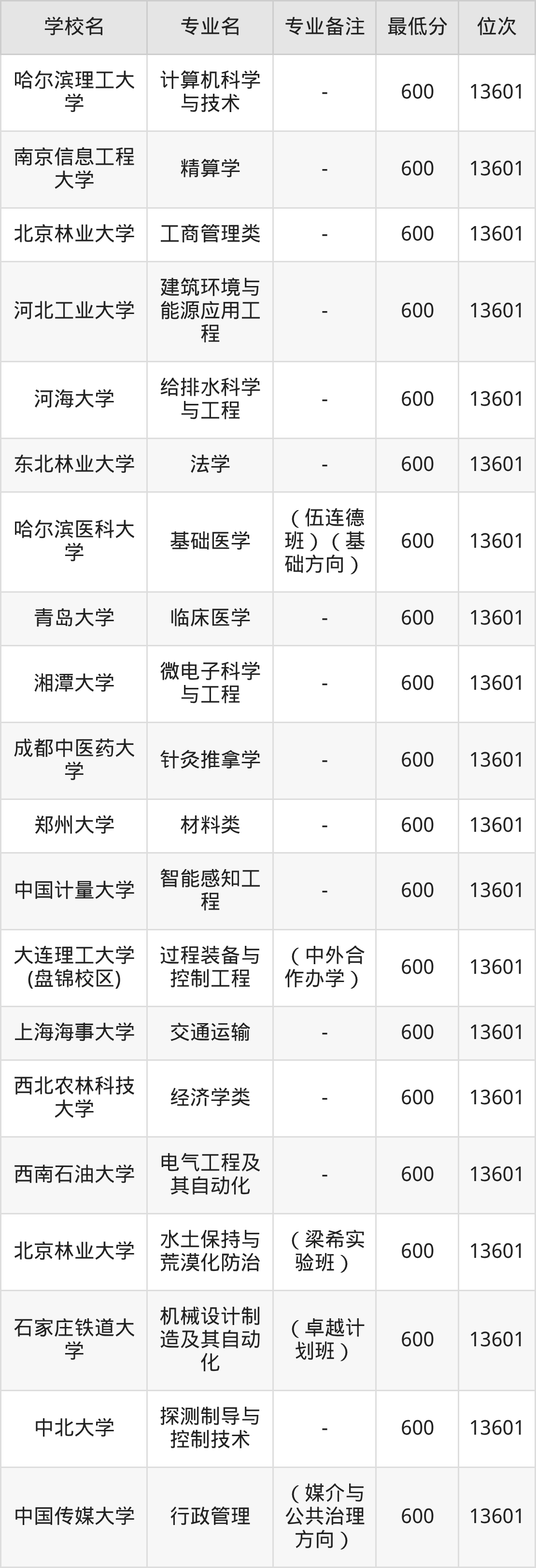 为让同学们可以有很多可选择的院校,除上述已经列举的名单外,下面还展示了2025年辽宁物化生600分左右(599分-601分)的部分大学名单一览表,供参考,注意学校不同分数对应专业有差异: