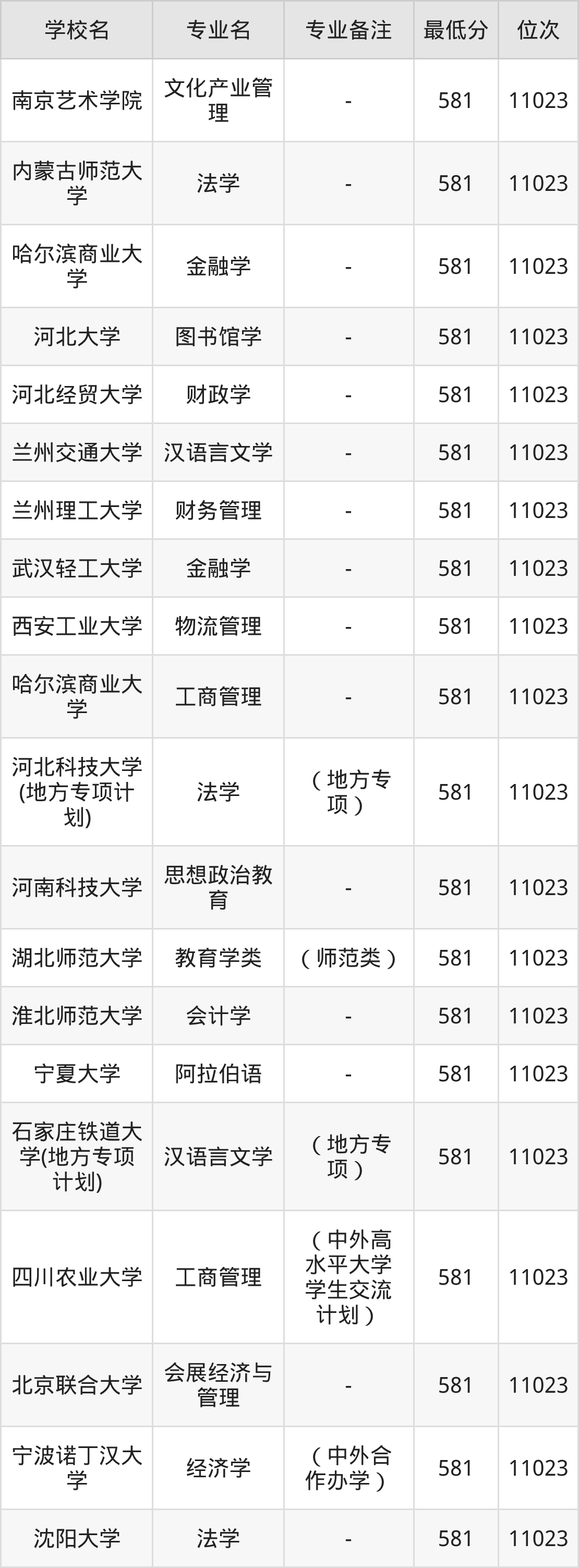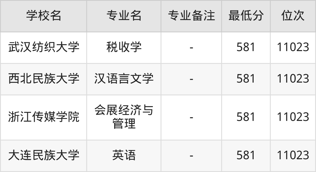 为让同学们可以有很多可选择的院校,除上述已经列举的名单外,下面还展示了2025年河北历政地581分左右(580分-582分)的部分大学名单一览表,供参考,注意学校不同分数对应专业有差异: