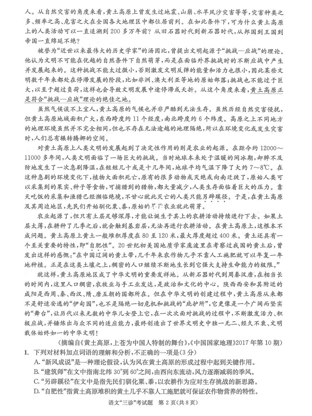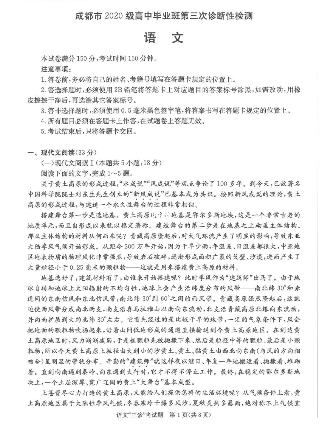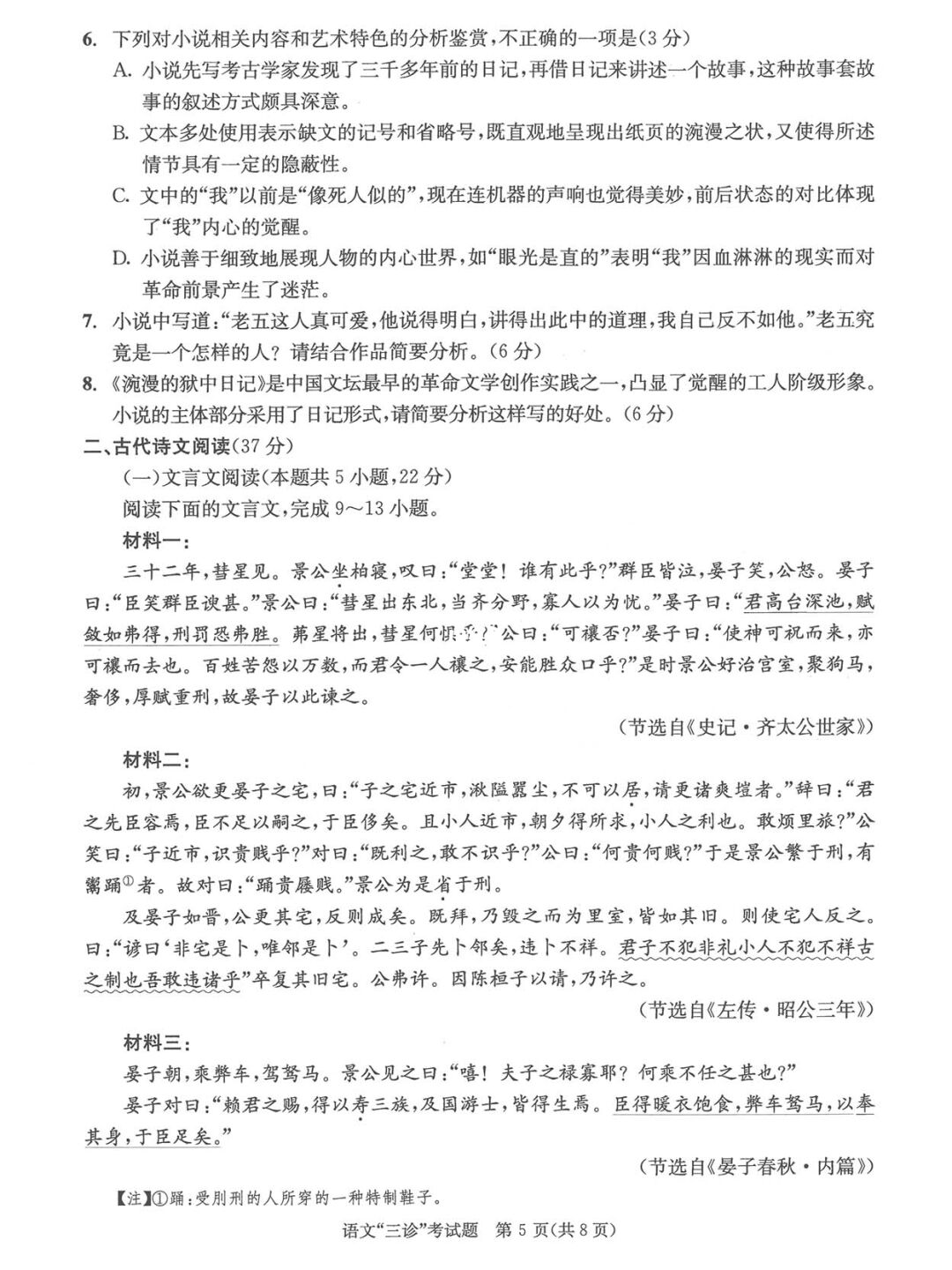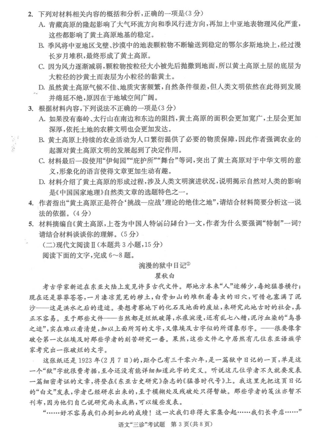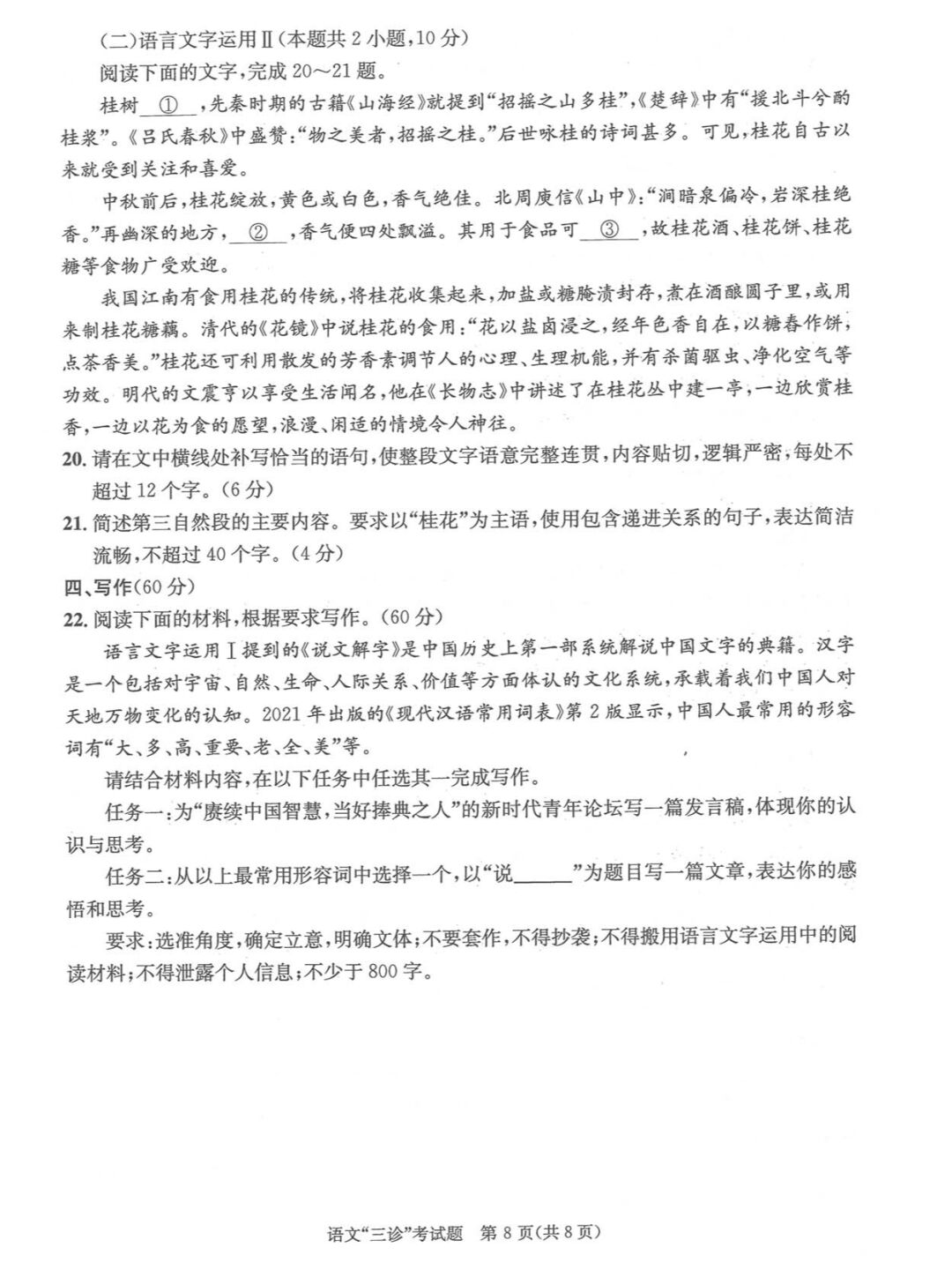 一、2023成都三诊语文试卷