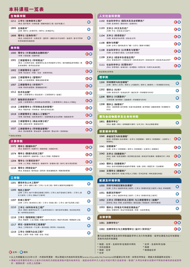 2026年香港城市大学在内地本科招生专业一共有48个,包括生物医学工程、生物科学、会计、管理学、市场学等,详情可查看下图。