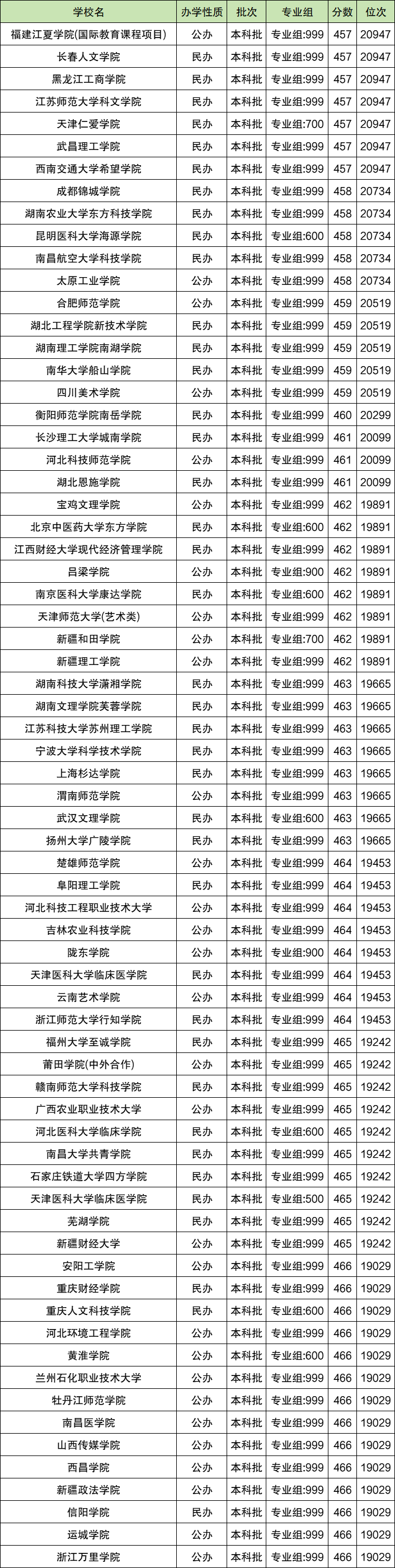 2万名左右最低位次对应的院校是福建江夏学院(国际教育课程项目)、长春人文学院、黑龙江工商学院,最低录取位次为20947位,位次对应分数为457分。