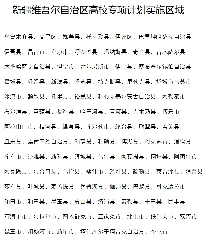 新疆地方专项计划大学名单及录取分数线(滑动查看):
